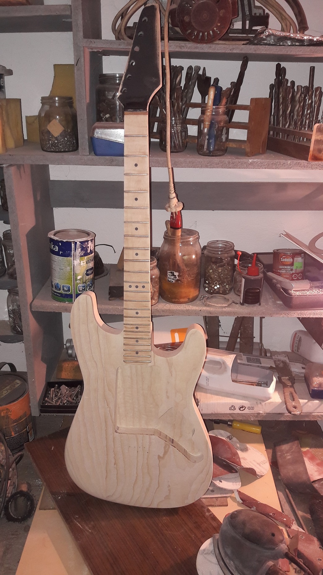 Cierpie na brak czasu ale ostatnio znalazłem chwile. Korpusowi nadałem kształty a z gryfu zdarłem wczełniej pomalowany kolor. Będę malował jeszcze raz