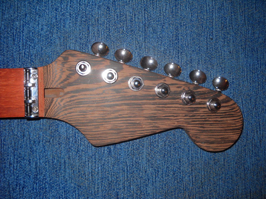 Cały korpus i szyjka jest w wykołczeniu oil finish,jedynie główka a własciwie jej przód pomalowany został lakierem poliuretanowym i wypolerowany na połysk.No i jeszcze nie ma przykręconych straplocków