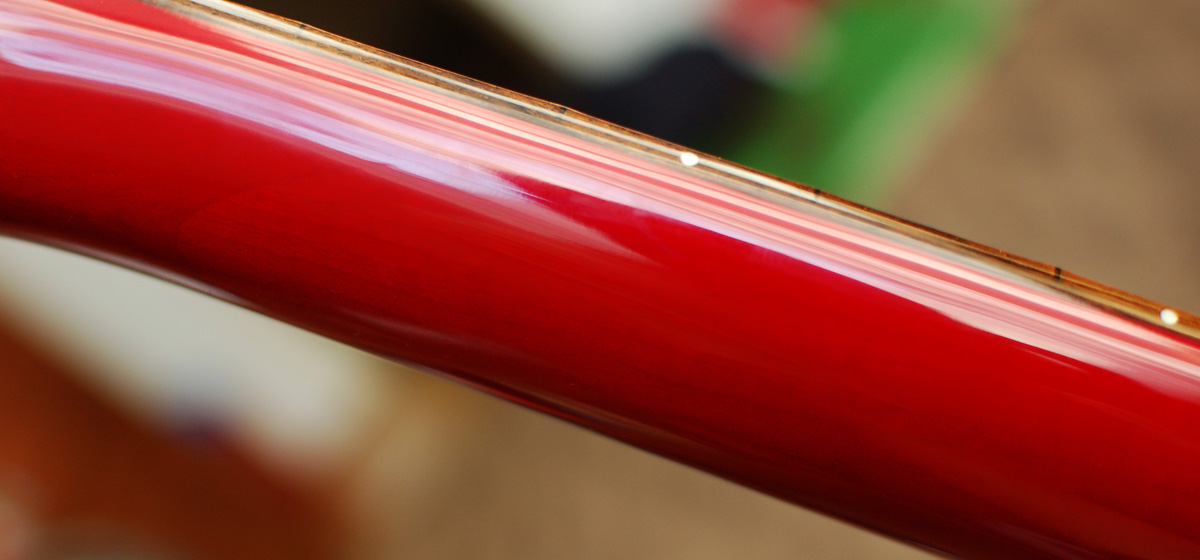 Gitara jeszcze niedawno byla pokryta lakierem poliestrowym po wczełniejszym zabejcowaniu przez poprzedniego wlasciciela, który chyba bardzo kochal socjalistyczne meblołcianki i nalal warstwę ok 1mm. Stwierdzilem, że lepsza będzie emalia nitro, nie będzie tak tlumię brzmienia.