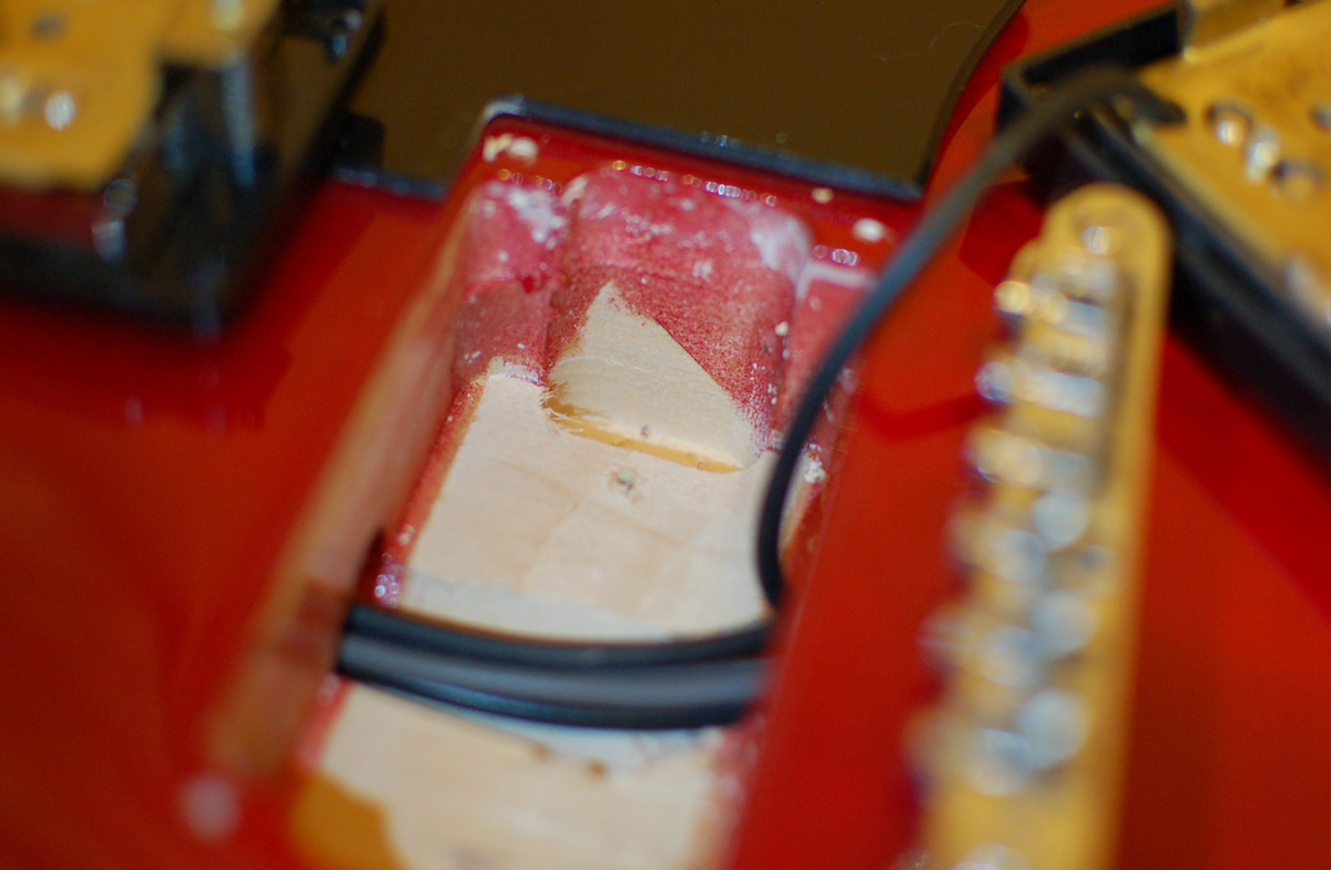 Po wykręceniu przetwornika pod gryfem myłlałem że jest ok bo pod Top'em było "jakby ciemniejsze drewno" niestety to chyba tylko farba bo gdy odkręciłem przetwornik przy mołcie zobaczyłem dużo jasnego drewna - nie pomalowanego - tak jak na zdjęciach.