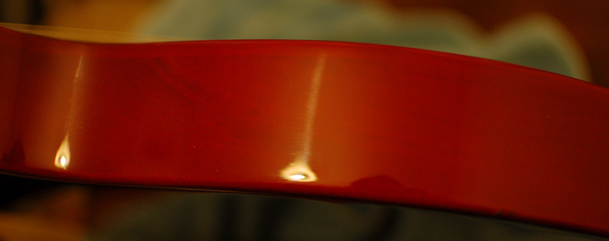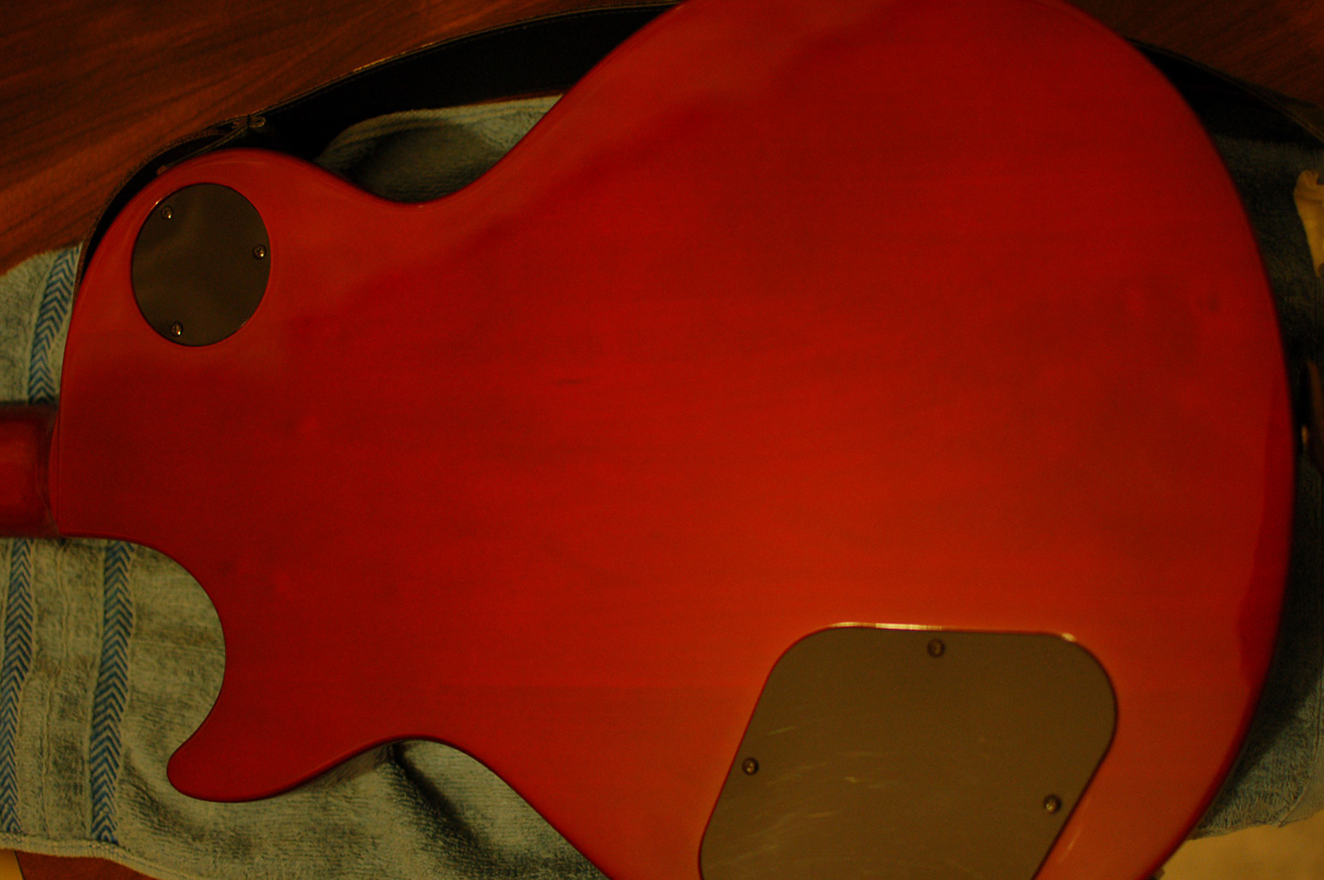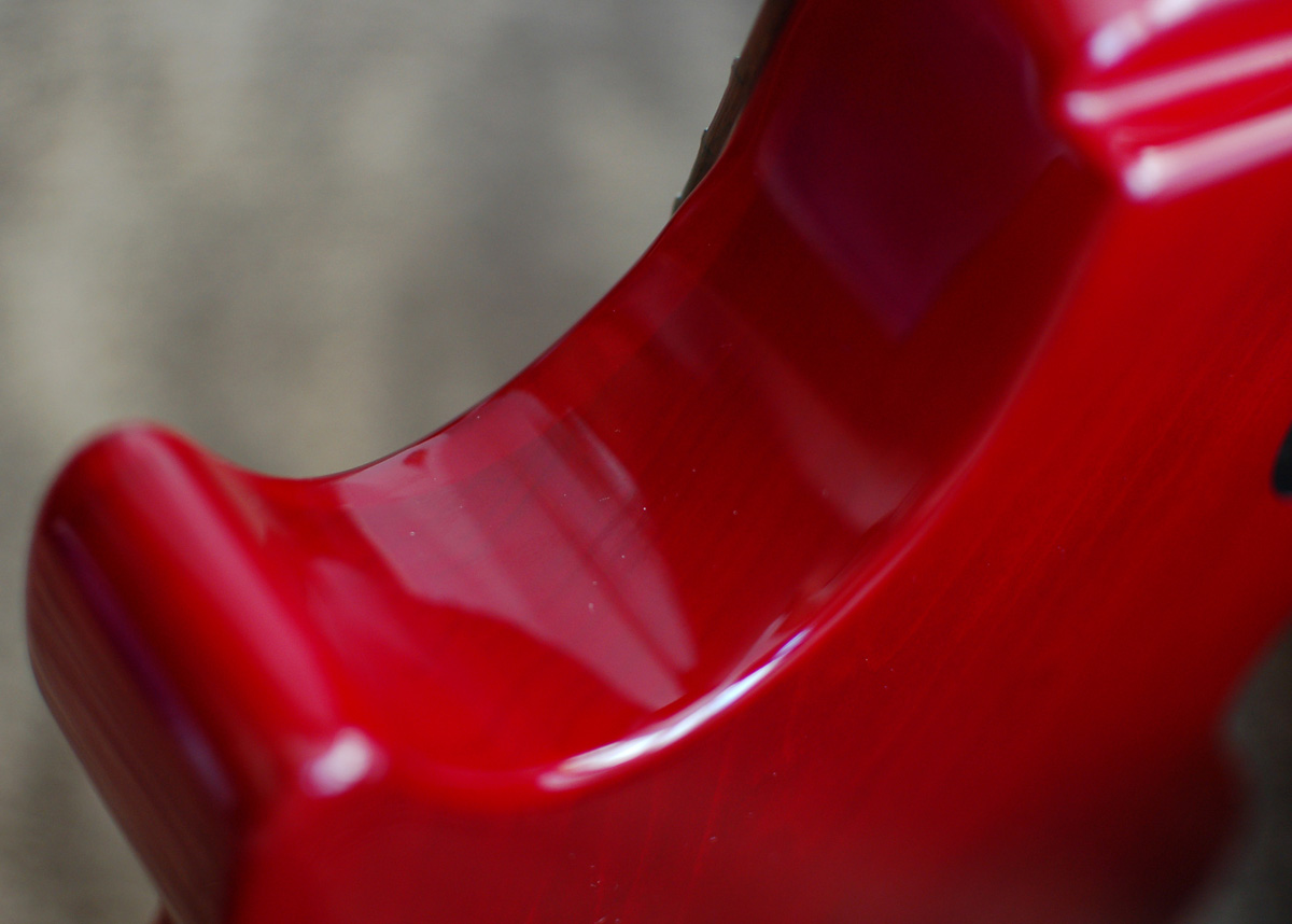 Gitara jeszcze niedawno byla pokryta lakierem poliestrowym po wczełniejszym zabejcowaniu przez poprzedniego wlasciciela, który chyba bardzo kochal socjalistyczne meblołcianki i nalal warstwę ok 1mm. Stwierdzilem, że lepsza będzie emalia nitro, nie będzie tak tlumię brzmienia.