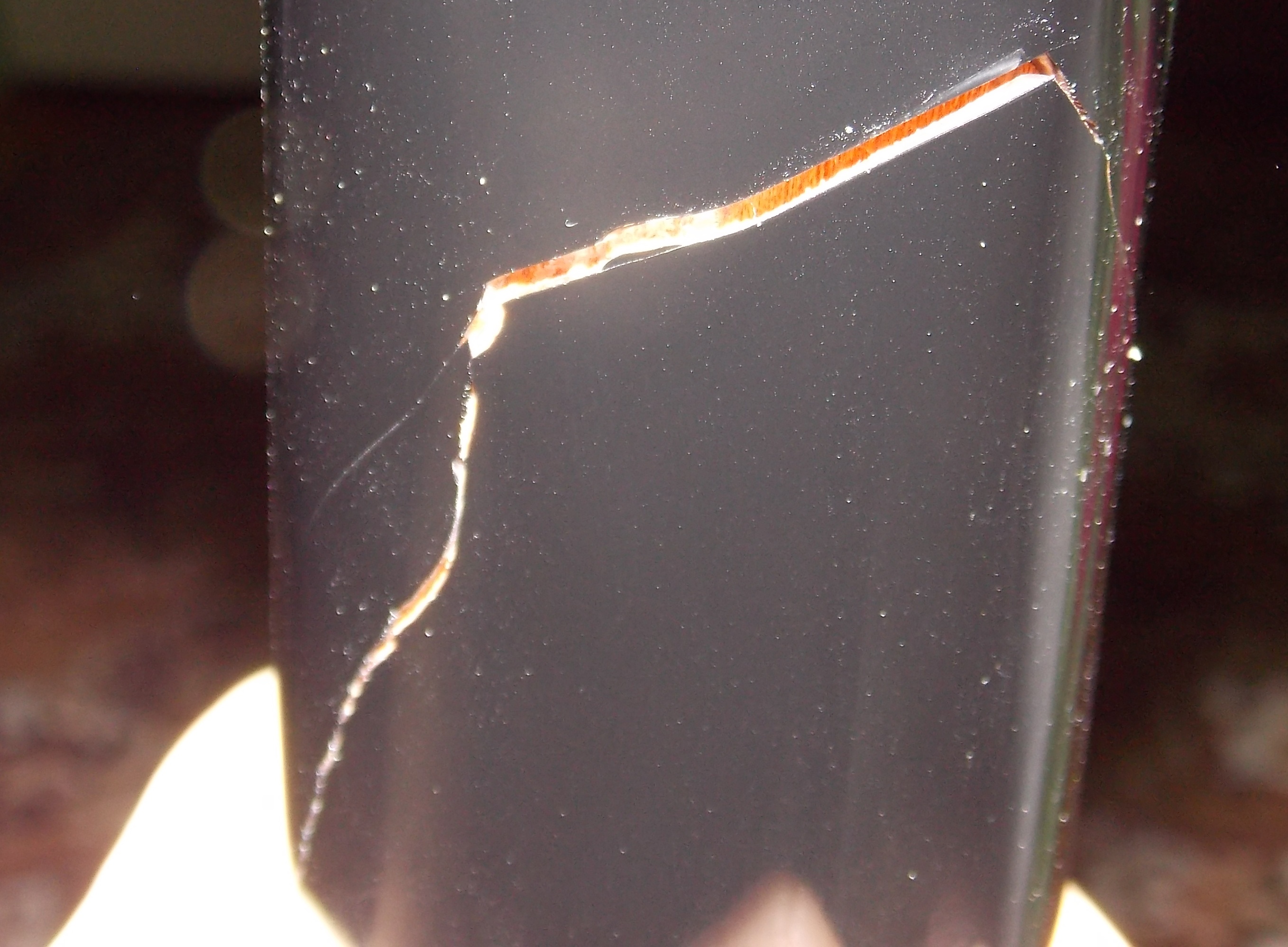 Ja tam nie widzę żadnej szpachlówki. Titebond za gęsty aby się dało przecisnęę go nawet przez grubę igłę strzykawki ale po minimalnym rozciełczeniu wodę się da. Nie musi byę Titebond ale wystarczy inny klej do drewna w klasie D2. Minimalnie rozciełczyę, zassaę strzykawkę, rozeprzeę lekko pęknięcie, zaaplikowaę klej strzykawkę z igłę, łcisnęę i po sprawie. Oczywiłcie pozostanie ostra krawędęšłpęknięcia i tu najwięcej roboty aby usunęę defekt estetyczny.