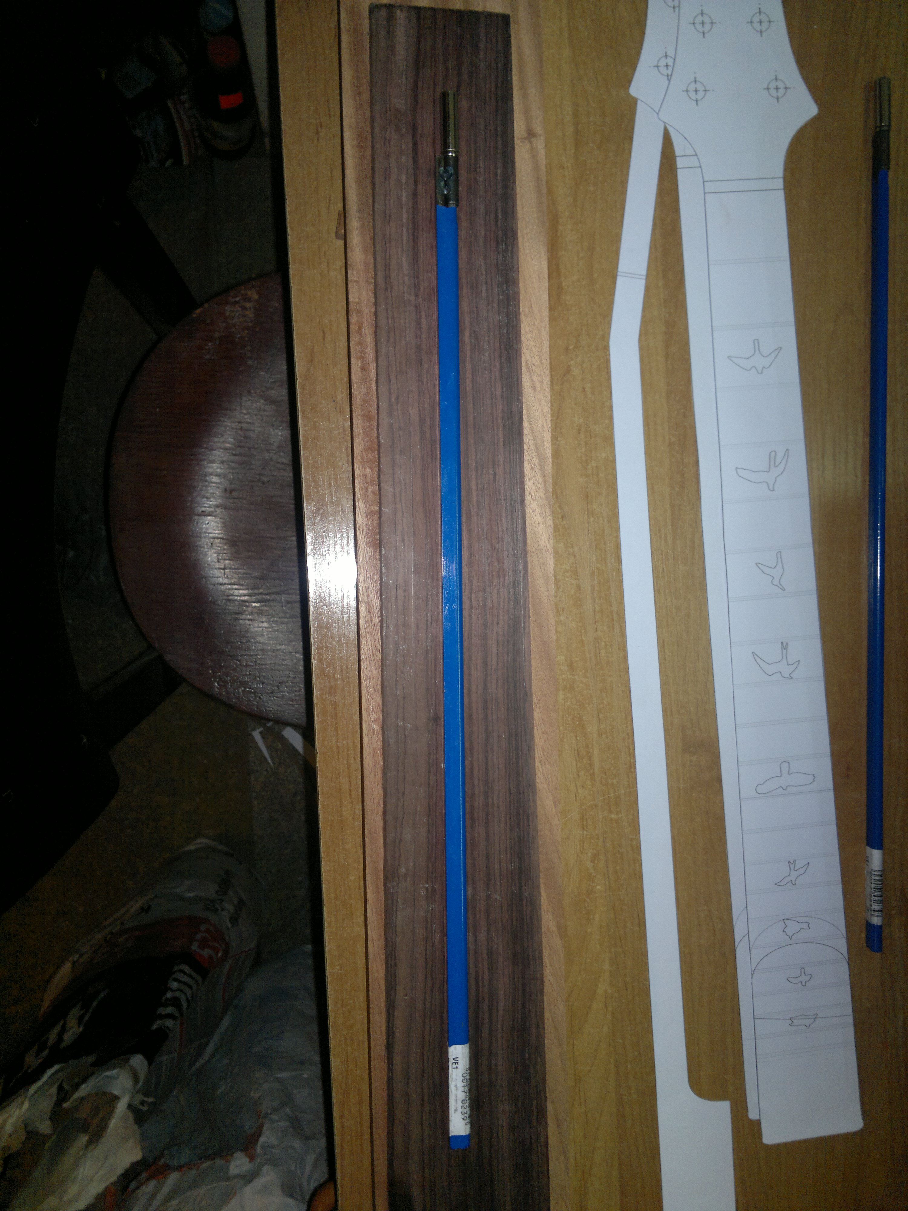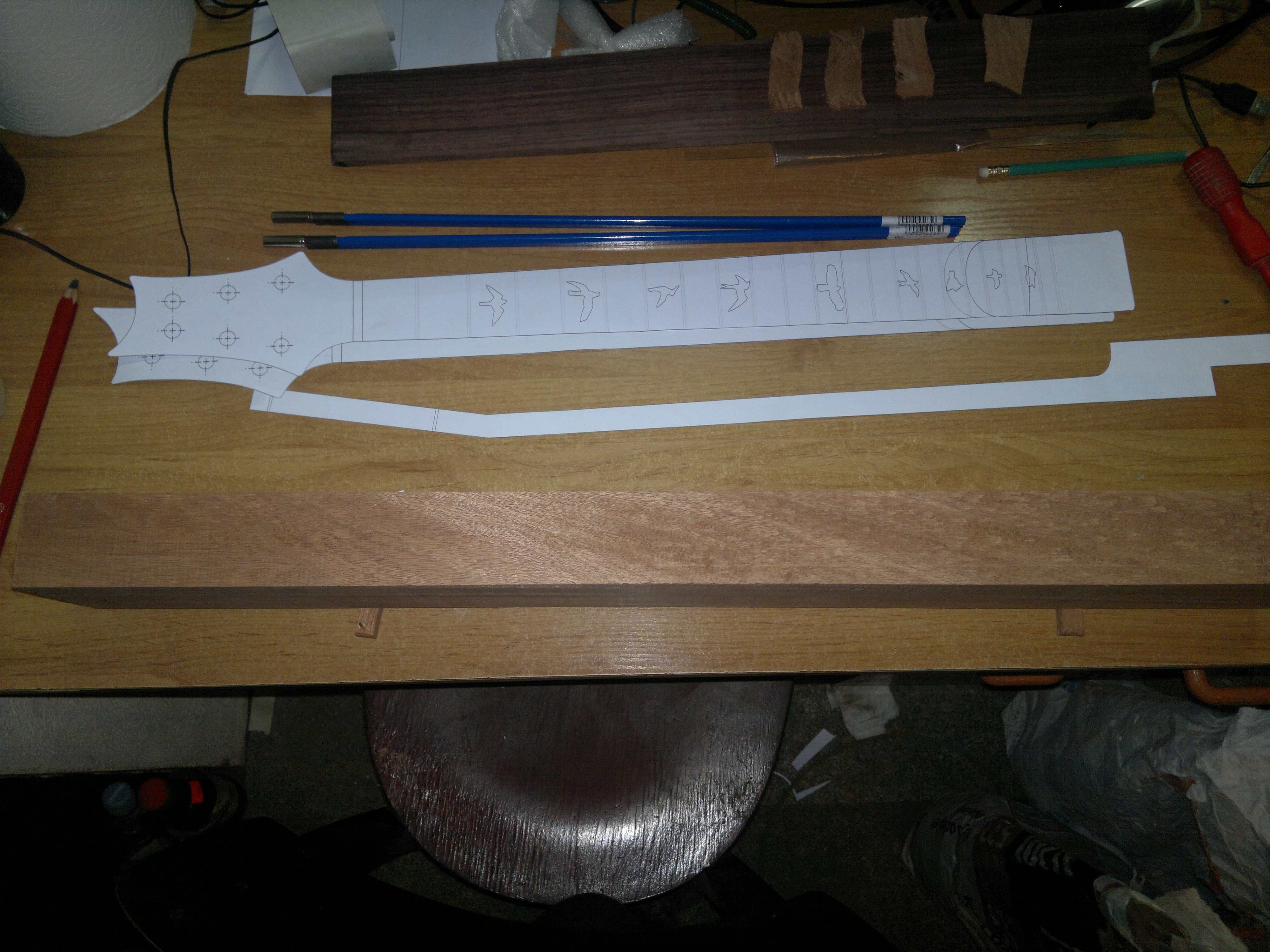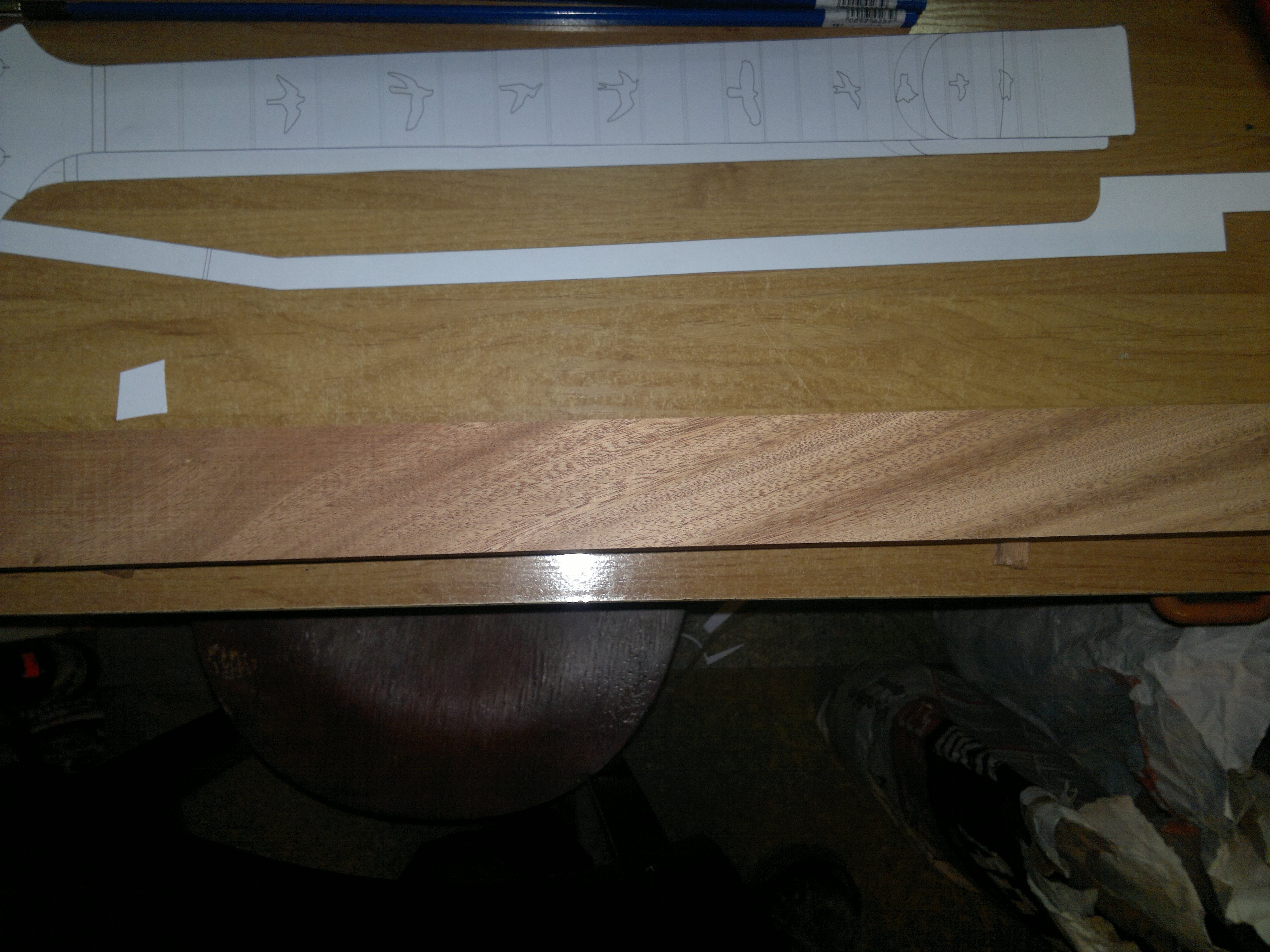 Witam kolegów, zamieniłem klejonkę na jeden patyk o odpowiednich wymiarach. Niestety słoje, które na jednym kołcu deski wyględały ok (czyli prostopadle do podstrunnicy) po przecięciu okazały się pofalowane. Zastanawiam się czy nie zrobię klejonego gryfu z 5-ciu częłci na przemian z klonem, mam kupione dwa pręty regulacyjne, ale "jednokierunkowe" czy zaopatrzyę się w "drukierunkowe" ? wstawię zdjęcia przyciętego klocka, może obejdzie się bez cięcia?...