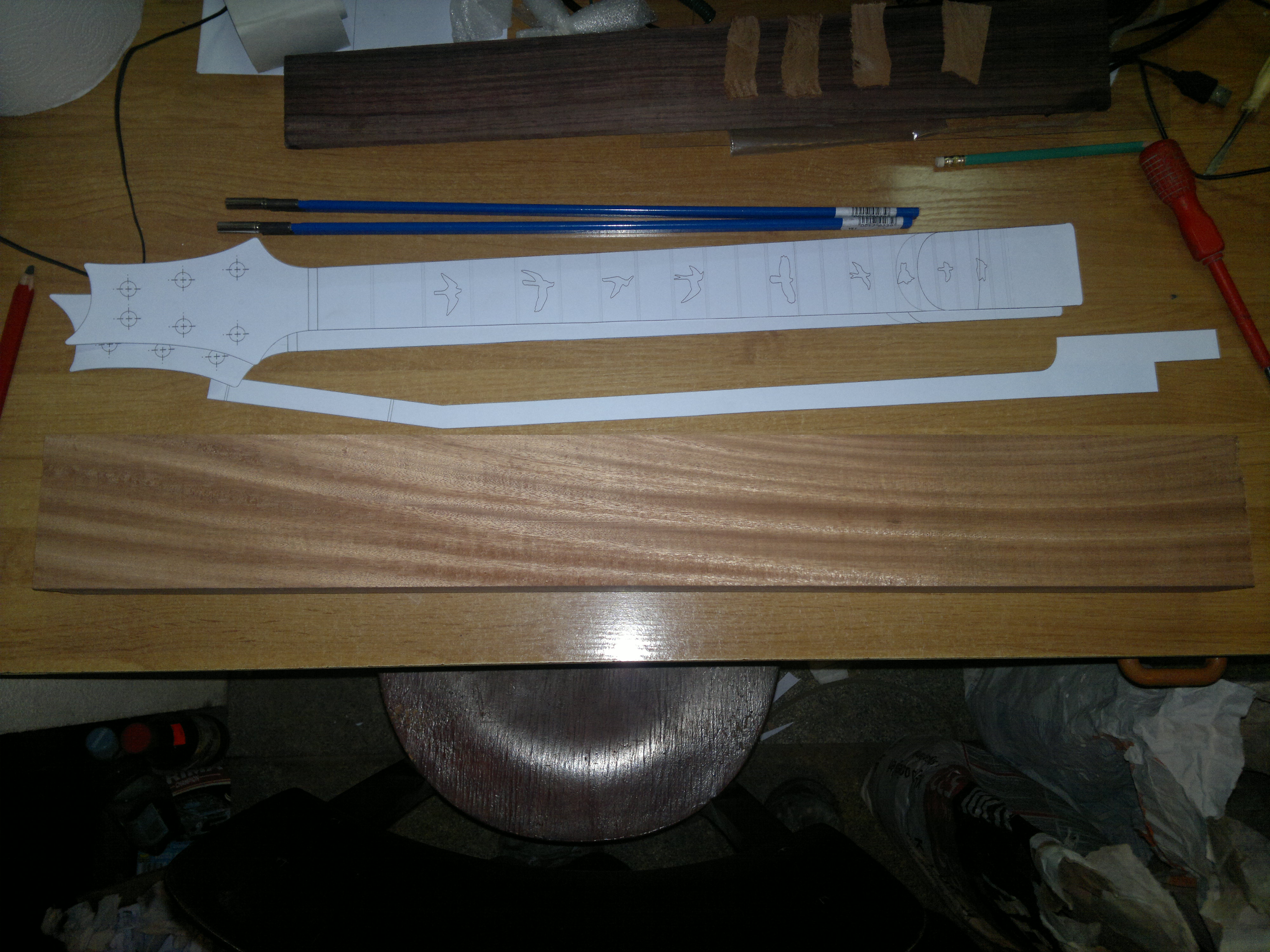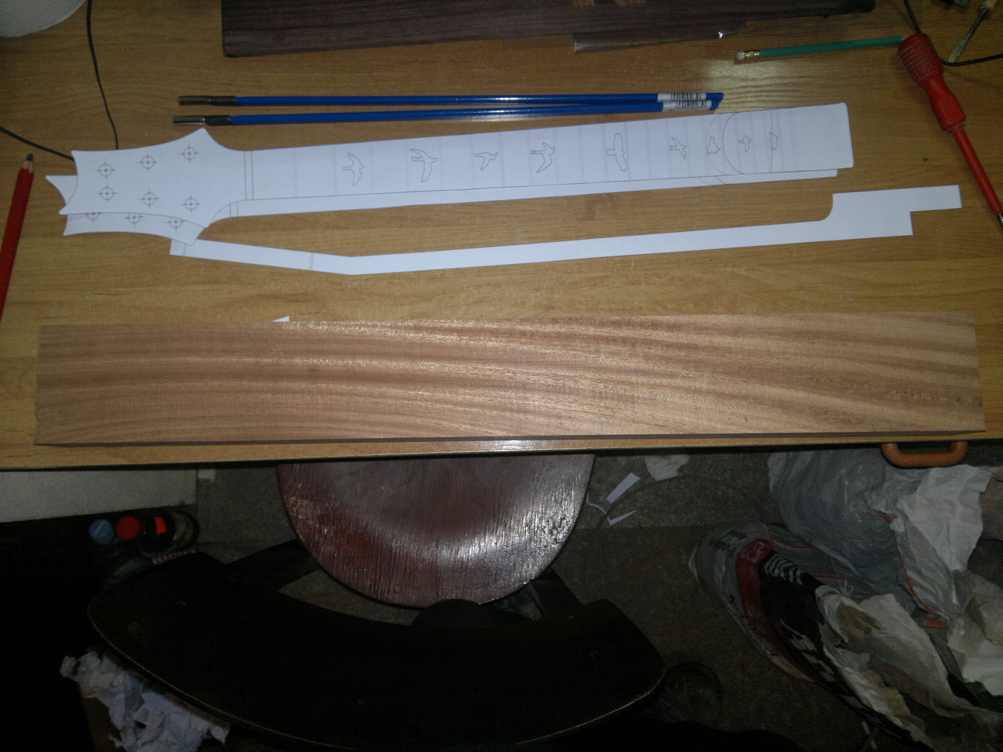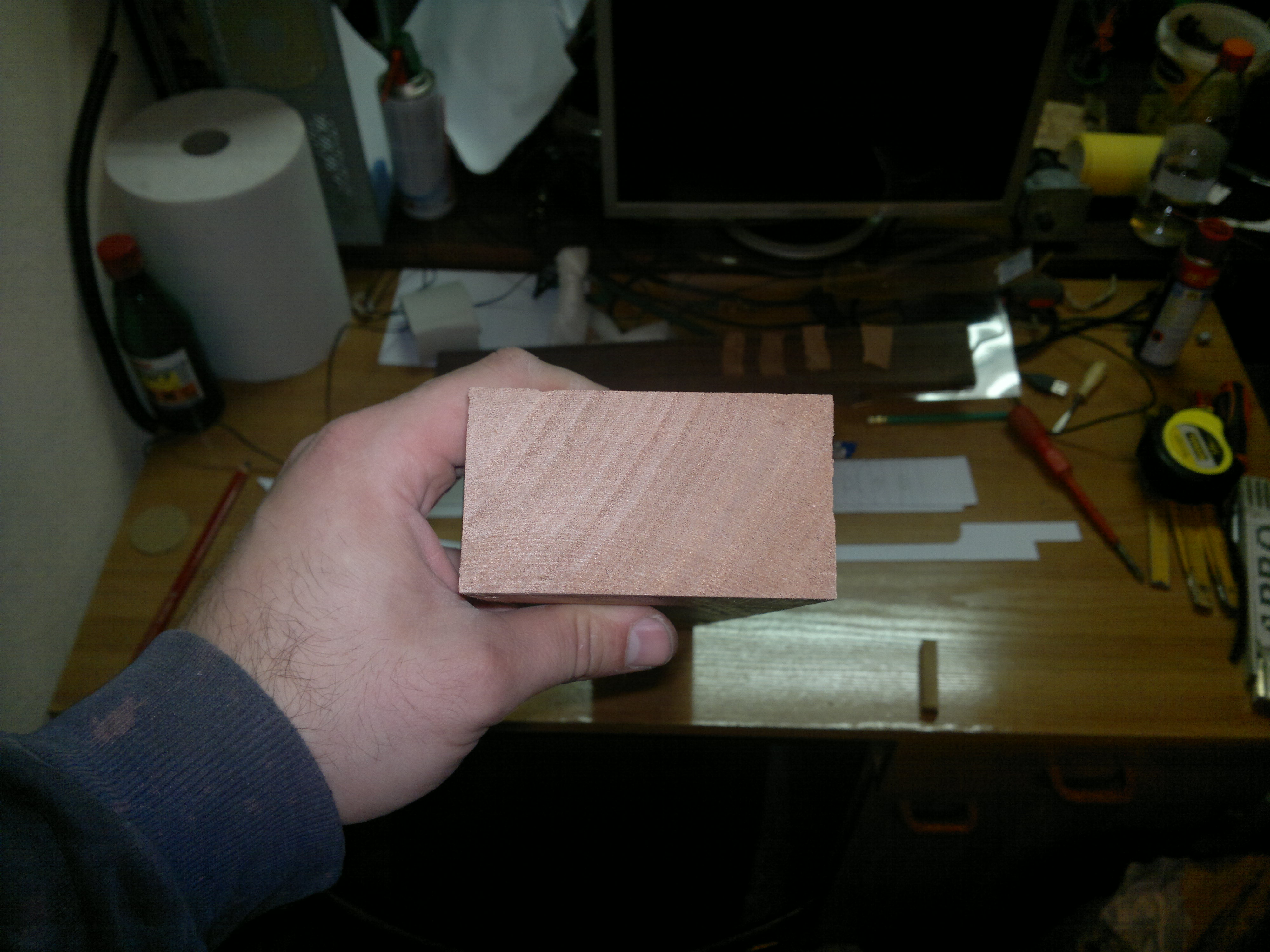 Moim zdaniem na gryf lepszy byłby pionowy układ słoi (prostopadły do podstrunnicy). Taki klocek jest wytrzymalszy i sztywniejszy wobec sił działajęcych na gryf.