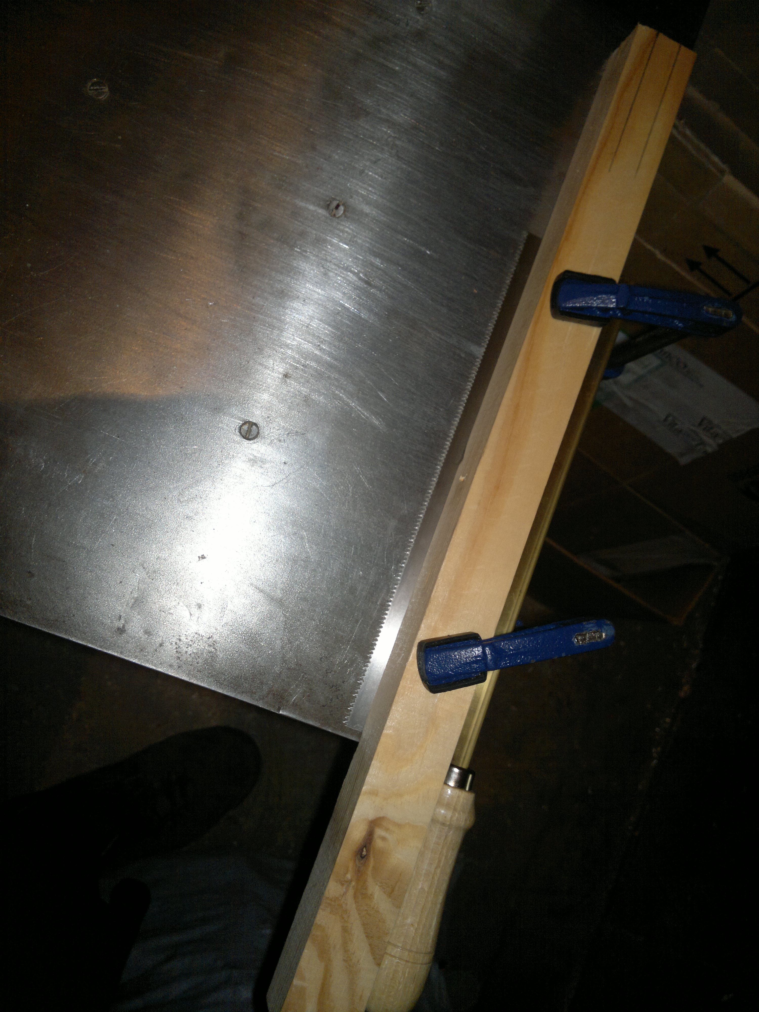 1. łcisnęłem zęby piły w dużym imadle przez dwa płaskie metalowe klocki (niestety bez fotki) póęšłniej zmierzyłem suwmiarkę z ponad 1mm zrobiło się 0,54