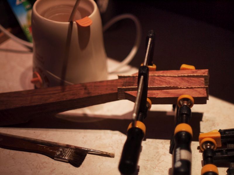 Nowe ukulele będzie całe z bubingi z hebanowę podstrunnicę (z forumowego sklepu). Nie będzie drężone tylko sklejone z deseczek, tak tradycyjnie. Niestandardowych kilka rozwięzał też będzie, gryf nie będzie klejony w połowie, klejenia będę tylko na główce (skrzydła główki) i doklejony będzie klocek w podstawie gryfu. Mostek będzie dociłnięty przez struny + strunocięg. Zastanawiam się nad stroikami, żeby stosowaę kołki skrzypcowe, potrzebny będzie rozwiertak.