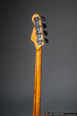 jawor falisty, podstrunnica wenge kropki i siodełko kołę wółowa (od tej samej krowy) markery boczne grab, progi Jescar srebrne, klucze Wilkinson 200, pręt regulacyjny obsada i nakrętka kwasiak, płaszczyk termokurczliwka.Wykończenie bejca "stare wino" lakier akrylowy, podstrunnica olejo-wosk od strony chwytni lakier na boczkach. Logo tymczasowo wielkie F ale już własne się drukuje.