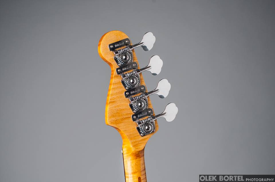 most, jin ho mosiężny chromowany niestety przykręciłem go o 1 cm za blisko gryfu i ledwo ustawiłem menzurę. picguard turtoise, płytka montażowa uzbrojona potencjometrami Goldo 500kohm BBA kondziu Orange drop, pickupy set SD STK-J2. Wykończenie akryl.