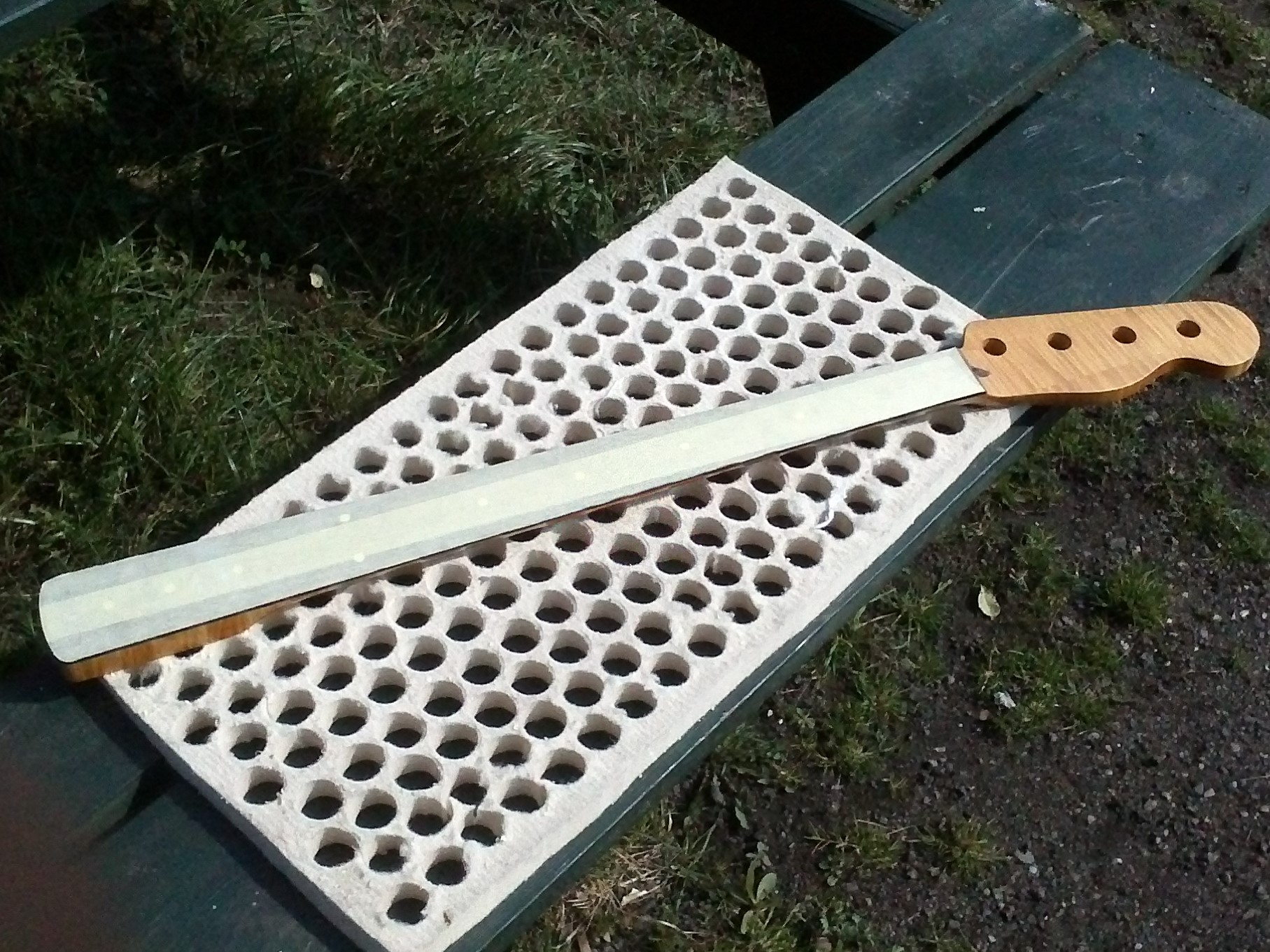 gryf jawor falisty z tego samego klocka co Bubinga jazz bass, podstrunnica i cały osprzęt gryfu identyczny jak w poprzedniej konstrukcji