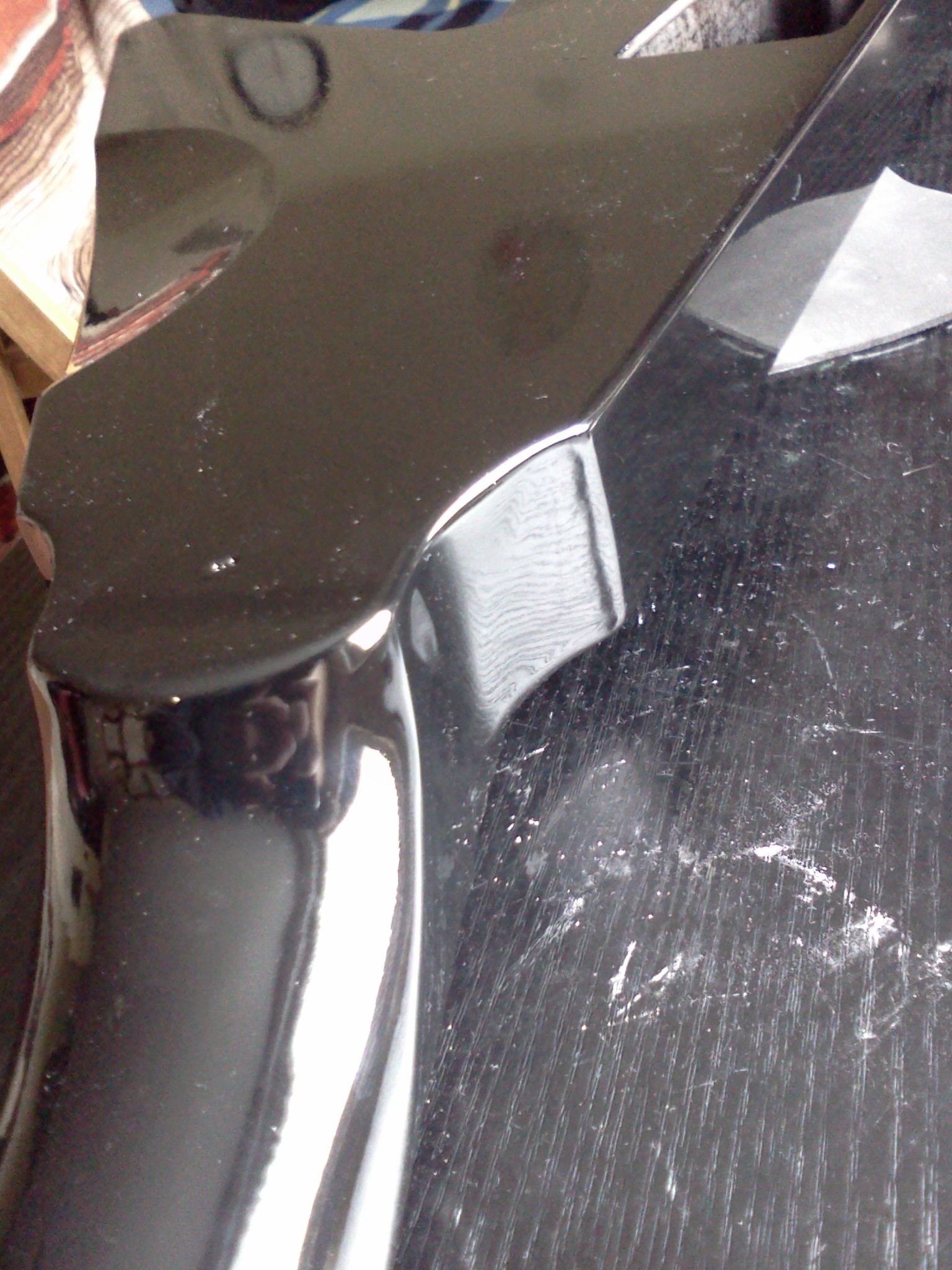 Włałciwy podkład nakładałem dzisiaj, korzystajęc ze sprzyjajęcej temperatury (poliuretan schnie ładnie nawet w chłodny Dzieł, ale poliester potrzebuje pod 20 stopni). Jest to bezbarwny podkład poliestrowy, położyłem dwie warstwy (w sumie ok 180ml). Po przeszlifowaniu we wtorek okaże się, czy potrzebne będę następne warstwy podkładu. Na to dopiero pójdzie warstwa czarnego poliuretanu i na koniec bezbarwny poliuretan.