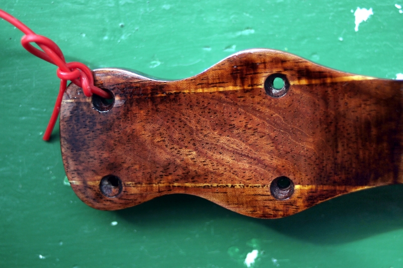 To nie są dziury w powłoce tylko w drewnie. Lakier spirytusowy jest tak cieniutki w warstwach, że nie ma mowy o zalewaniu porów czy rys. Ona była taka lakierowana. Nie traktujcie tego jako wymówkę, że nie wiem jak położyę politurę bez takich dziur i kraterów. Nie jestem mistrzem łwiata, ale już w drugim ukulele położyłem politurę poprawnie - wizualnie;)