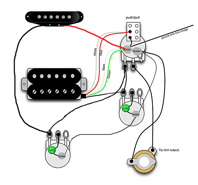 Będę zmieniał elektrykę w gitarze i mam problem z następujęcym połęczeniem:
