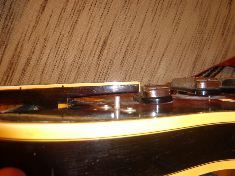 Dodam jeszcze, że dobrze by było zwiększyę wilgotnołę tej gitary, bo wyględa na mocno przesuszonę, a to tak jak w akustykach będzie prowadziło do deformacji w tym samym i innych miejscach. To jest hollow ,a więc pusta w środku