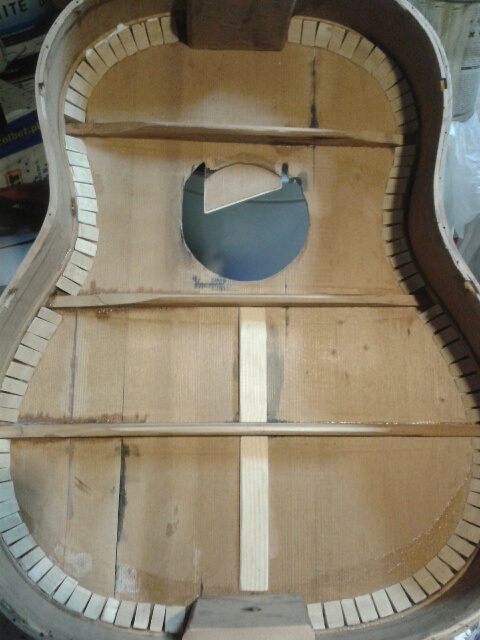 - belkowanie jest dołę ubogie (nie wiem czy Defil tak we wszystkich akustykach robił z oszczędnołci czy może to jakił ideał do takich pudeł ?) dlatego zamierzam je wzmocnię. Nie wiem jednak jakę wersję belkowania lepiej byłoby skopiowaę? Widziałem kilka schematów belkowania, ale autor nie opisał różnic wpływajęcych na dęšłwięk i zachowanie instrumentu. Zastanawiam się także czy istniejęce popękane belki mogę zwyczajnie skleię czy lepiej wykonaę całkiem nowe? Producent tutaj także wykonał belkowanie inaczej niż to, które widziałem na zdjęciach, gdyż belki są wklejone do boczków pudła podczas, gdy na tamtym zdjęciu belki są klejone tylko do płyty. ( http://www.reocities.com/ccbryan/BuildA ... mplete.jpg )