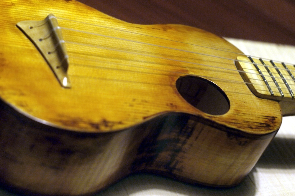 gra - najładniej z moich ukulelek - jawor-łwierk+lakier spirytusowy to jednak sprawdzony komplet;)