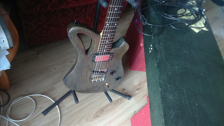 Witam szanownych Panów serdecznie nie dawno zostałem posiadaczem bardzo starej dębowej deski i pomyłleliłmy z moim ojcem czy by nie spróbowaę stworzyę gitary i wyszło ogólnie coś takiego.Gryf jest stety niestety używany menzura 25,5", 21 progów.