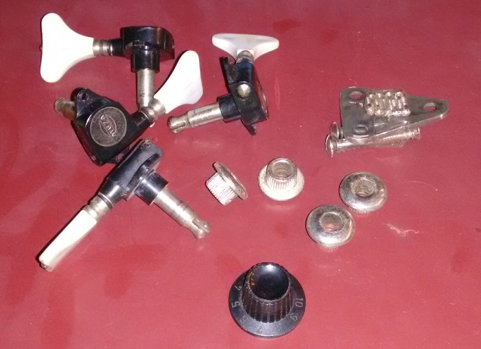 Klucze kompletne, płytka mocowania gryfu, pokrętło potencjometra.