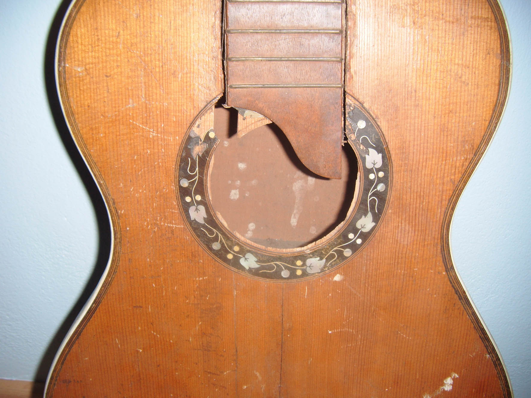 Na Dzieł dzisiejszy najbardziej palęcę dla mnie kwestię jest ustalenie pochodzenia tego instrumentu (autor, wytwórnia, data powstania) oraz ewentualnie dotarcie do siostrzanego egzemplarza tej gitary by mieę materiał poględowy do odtworzenia brakujęcych elementów. Niestety wnętrze instrumentu nie kryje żadnych inskrypcji nalepek itp. Z dużę nadzieję liczę na fachowe i dołwiadczone oczy kolegów i koleżanki z tego portalu.