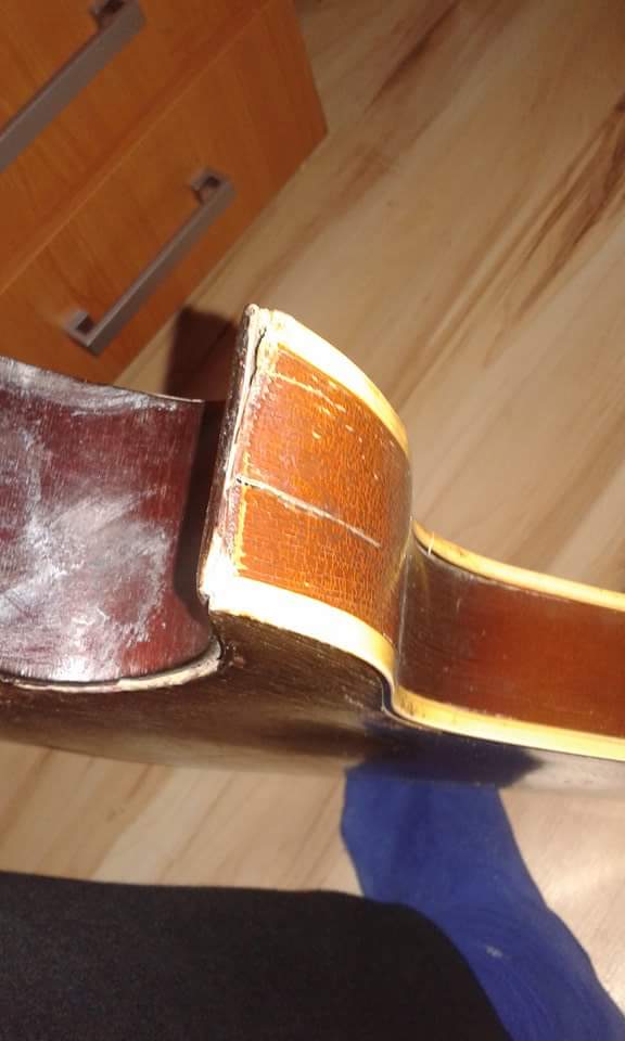 Czyjał radosna twórczołę, przeróbka miała nadaę gitarze "zachodniego" wyględu, a spowodowała masą naprężeł i odklejenie płyty wierzchniej (była przybita gwoęšłdziem :-P )