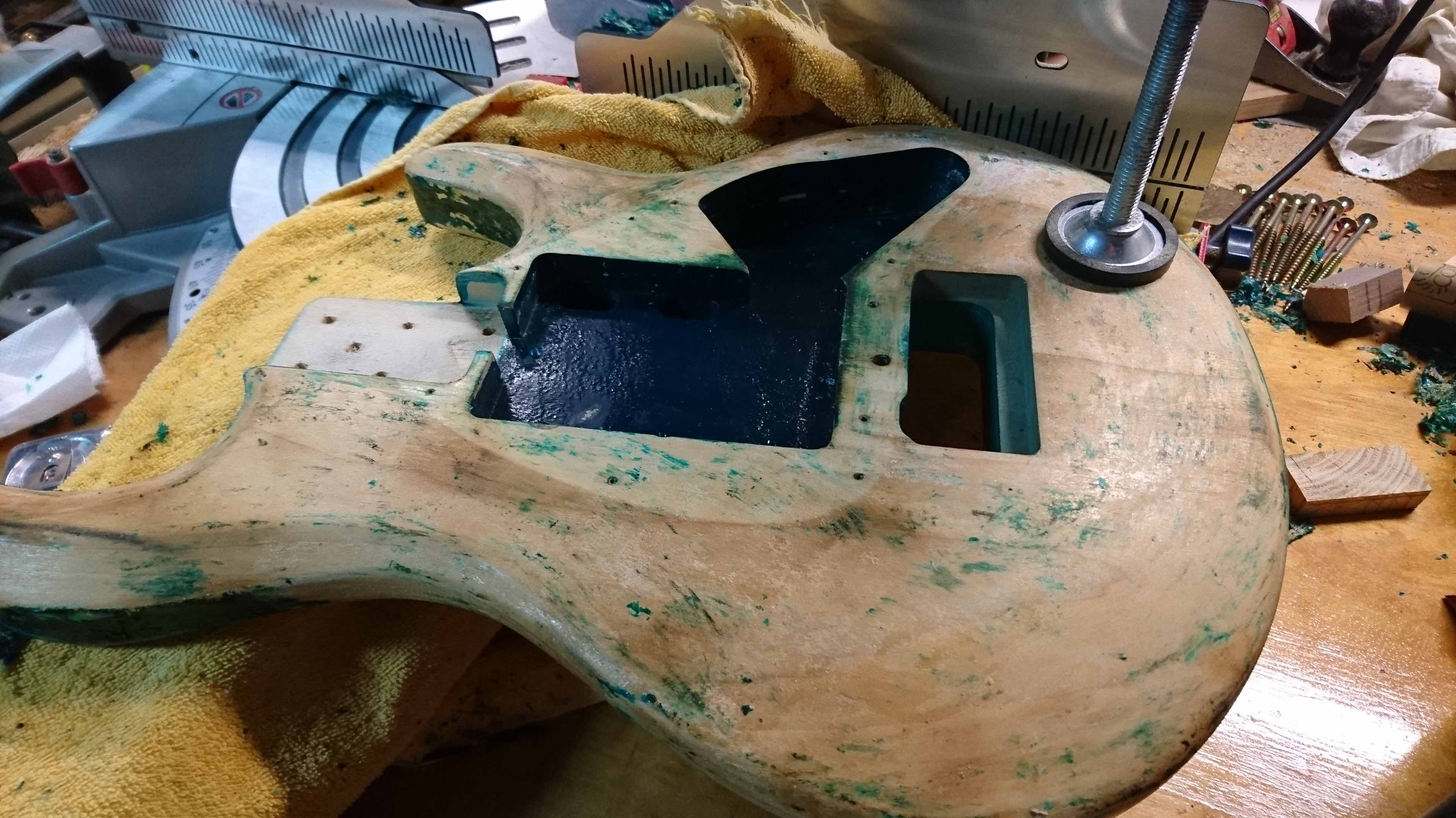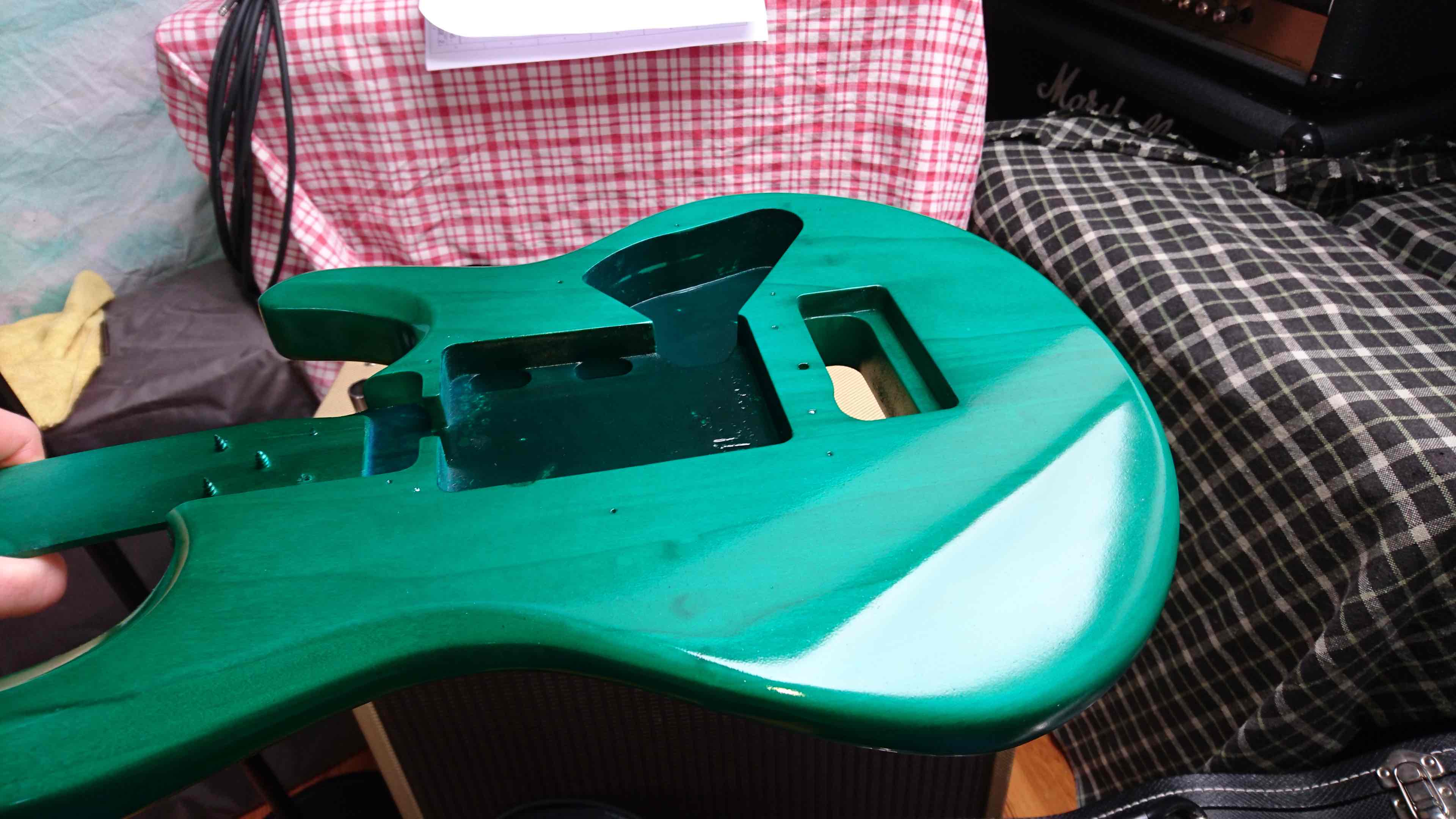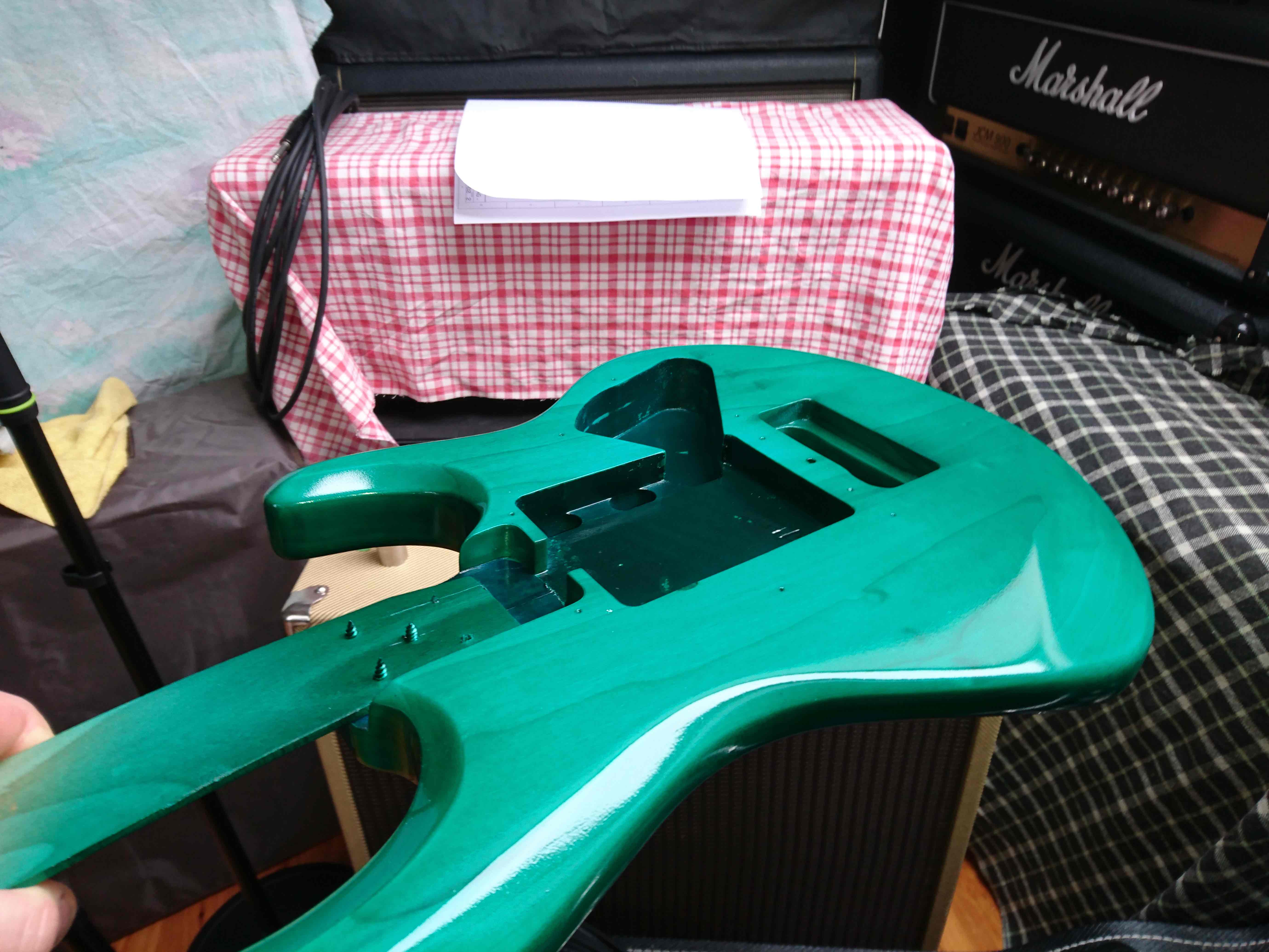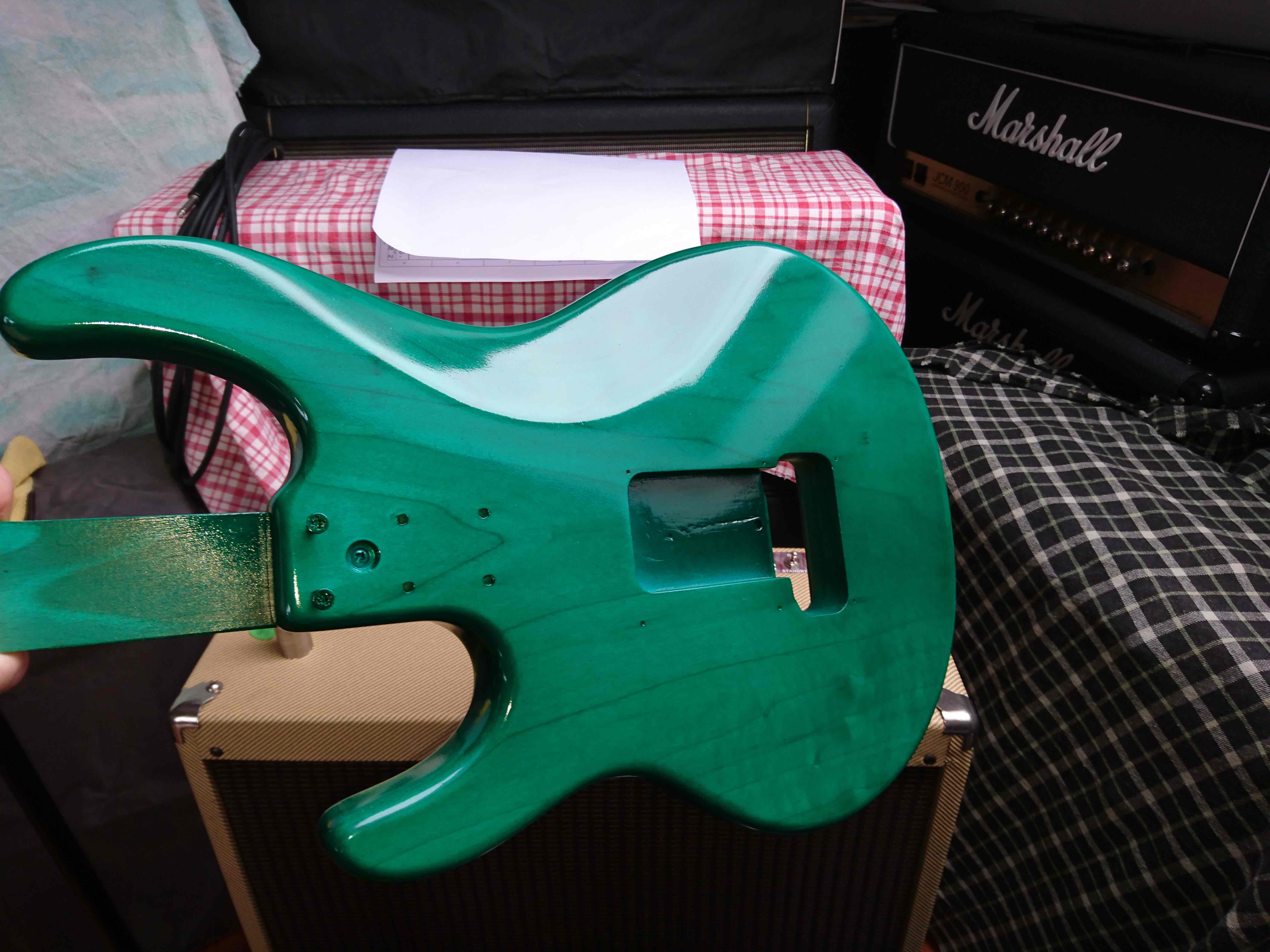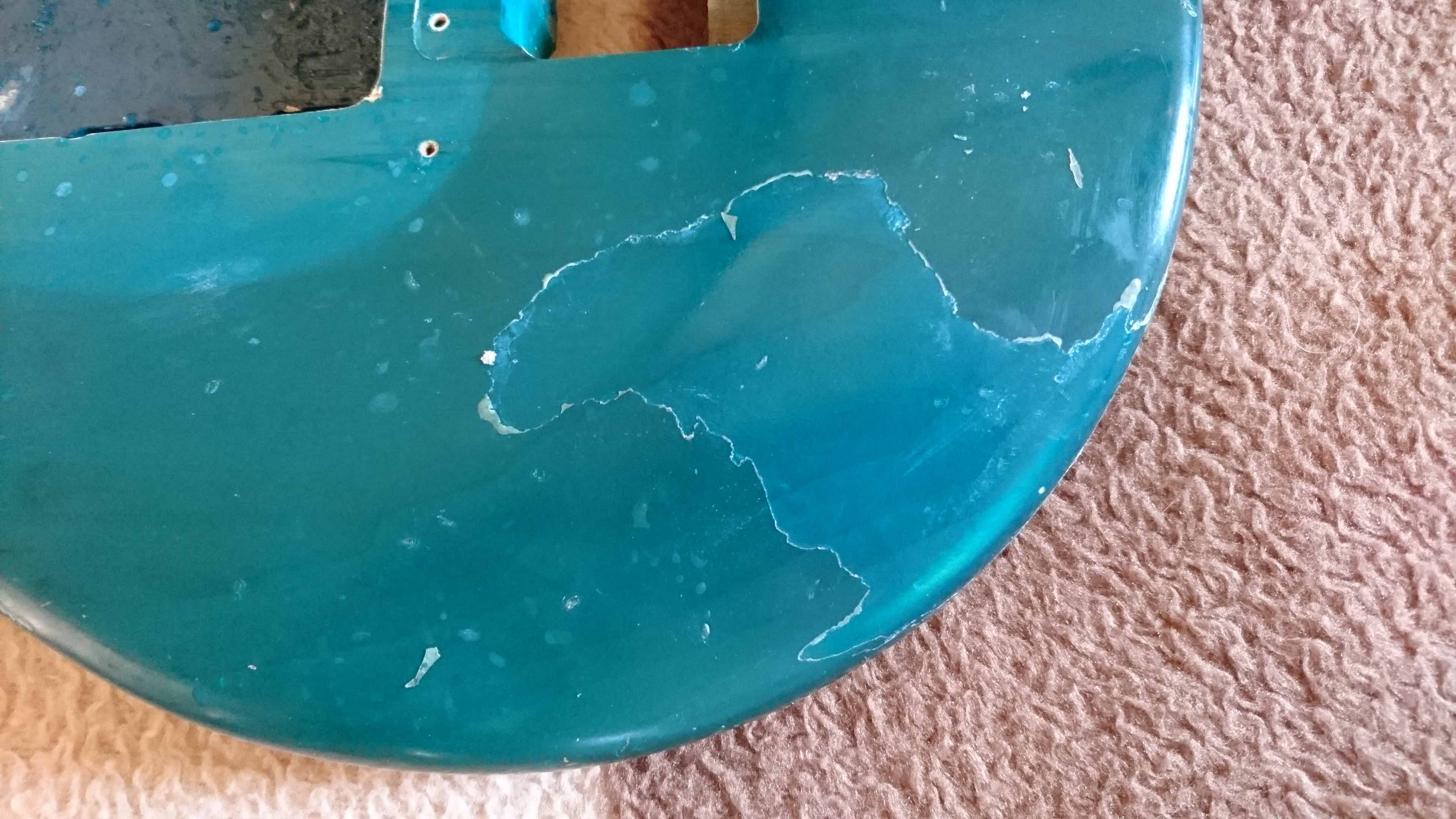 Niestety okazało się, że nie chciał schodzię i efektem była gitara (a włałciwie korpus) gorzej wyględajęcy po niż przed...