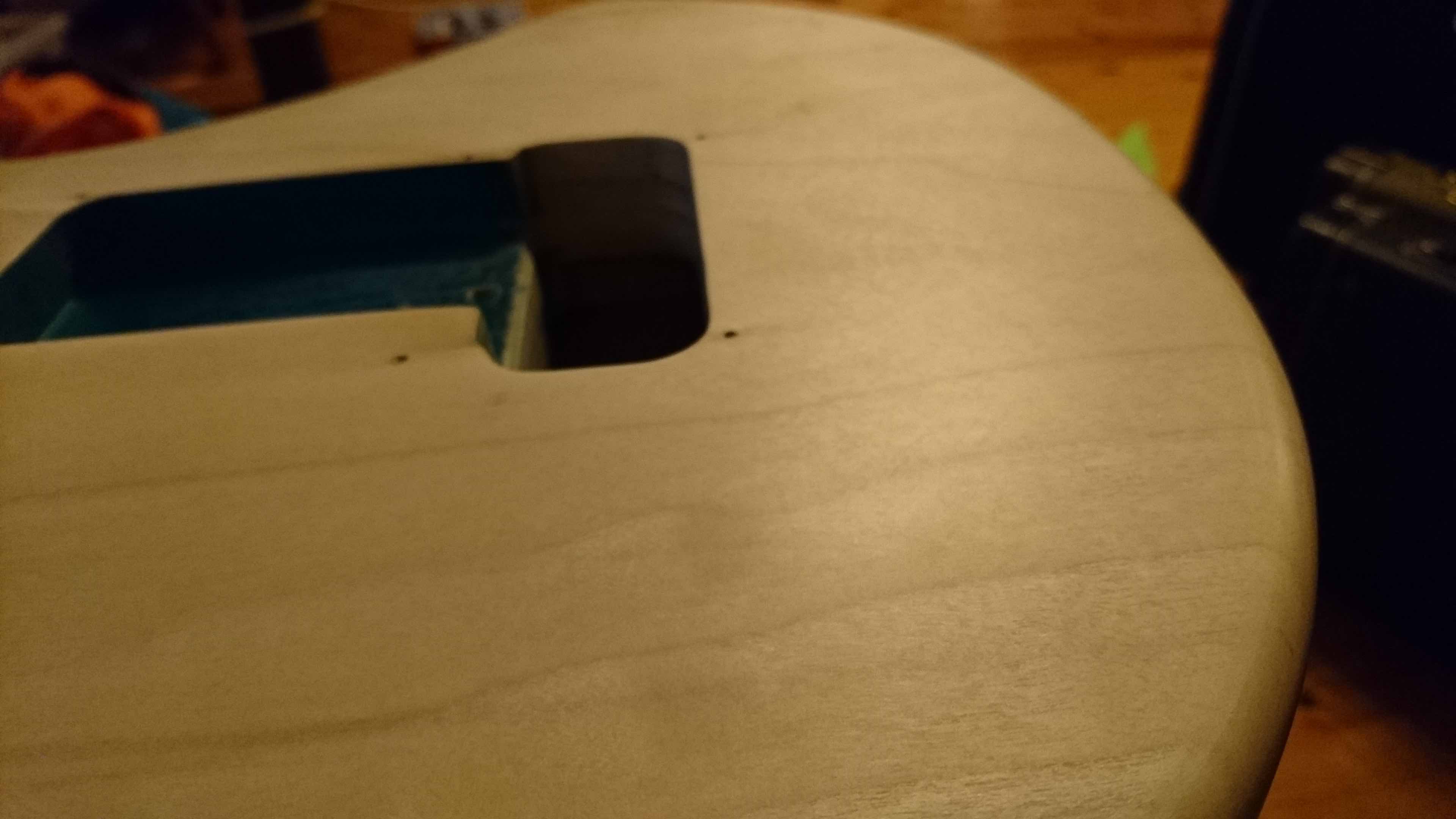 Owszem czasem przy otworach się trochę podniesie (jak dużo wody użyłem i długo szorowałem) ale po chwili znowu wraca do stanu pierwotnego, choę akurat w tym Music Man'ie trochę było to widaę, ale po łcięgnięciu lakieru i tak to było bez znaczenia ;-).