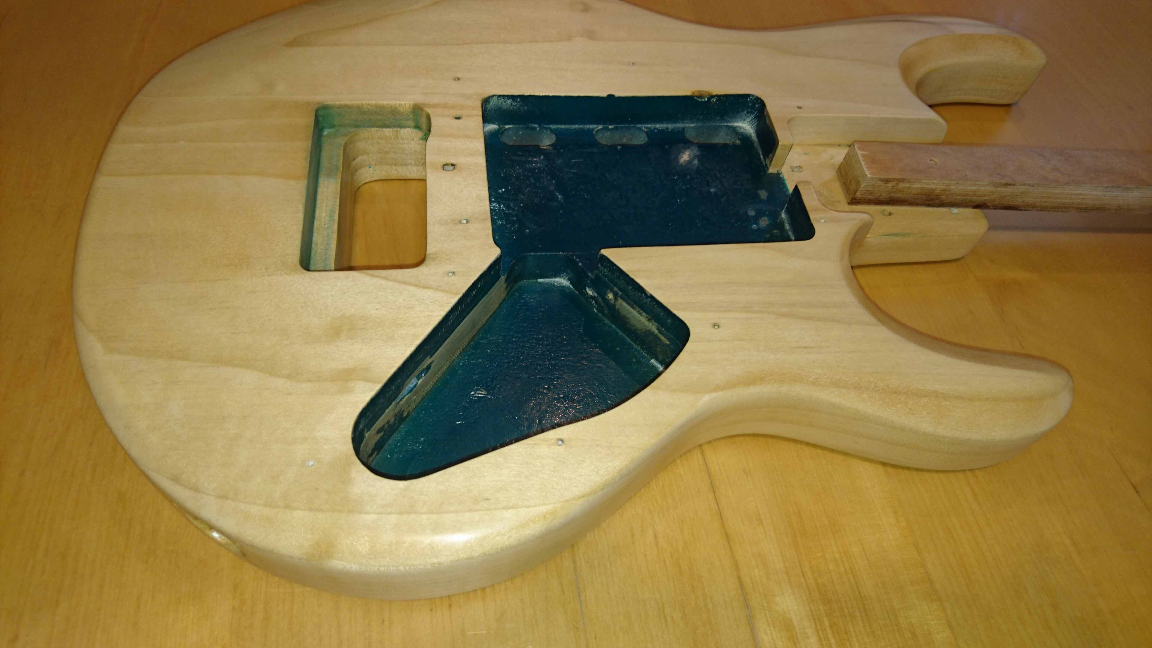 Napisałem do firmy Music Man i dowiedziałem się, iż daję 3 warstwy - podkład, kolor wierzchnię i prawdopodobnie poliuretan na spód i na wierzch a nitro w łrodek.