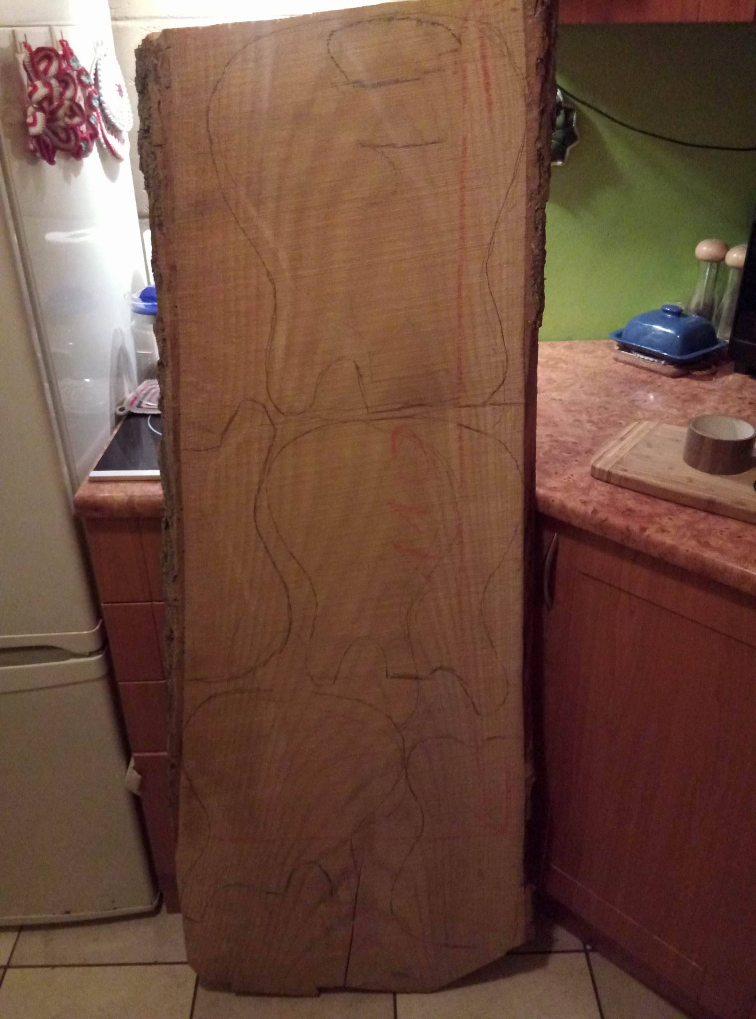 aby teraz wycięę zgrubne kształty, wyrównaę powierzchnie do klejenia i na praskę. jak już będzie sklejone to do odczekaę te kilka dni i zobaczyę co się będzie działo, a potem na grubołciówkę z czego docelowo pod pickupy zostawię tylko powierzchnie wyrównanę, a dół zedrzeę na zadanę grubołę... tak sobie myłlę,
