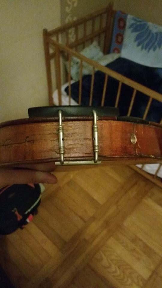 Skrzypce zniszczono zaciskajęc podbródek ponad miarę, poniższe zdjęcie jest kluczowe (załęcznik).