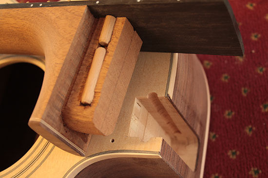 Dobrze by było, gdybył kołki wykonał z delikatnym stożkiem lub kołek walcowy przetnij przez łrodek tak do 3/4 długołci i po jego wbiciu w to nacięcie wbij cienki klin. Tak się klinuje np. trzonki młotków, siekier. To ostatnie tylko, gdy podstrunnicę mocujesz na kołcu.