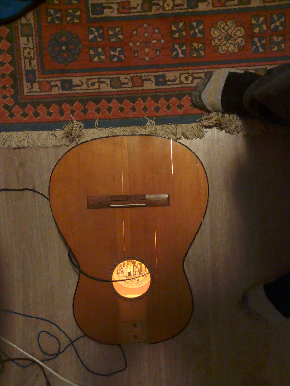 Kiedyś u kolegi w gitarze strzelił doklejany mostek w gitarze i od tamtej pory mam szacunek tylko do strunocięgów, główkuję jaki by pasował do grunge'owej gitary klasycznej? Najbardziej mi się podobał zrobiony z nierdzewnej łopatki do nalełników;-)Do soboty w robotach przerwa technologiczna.