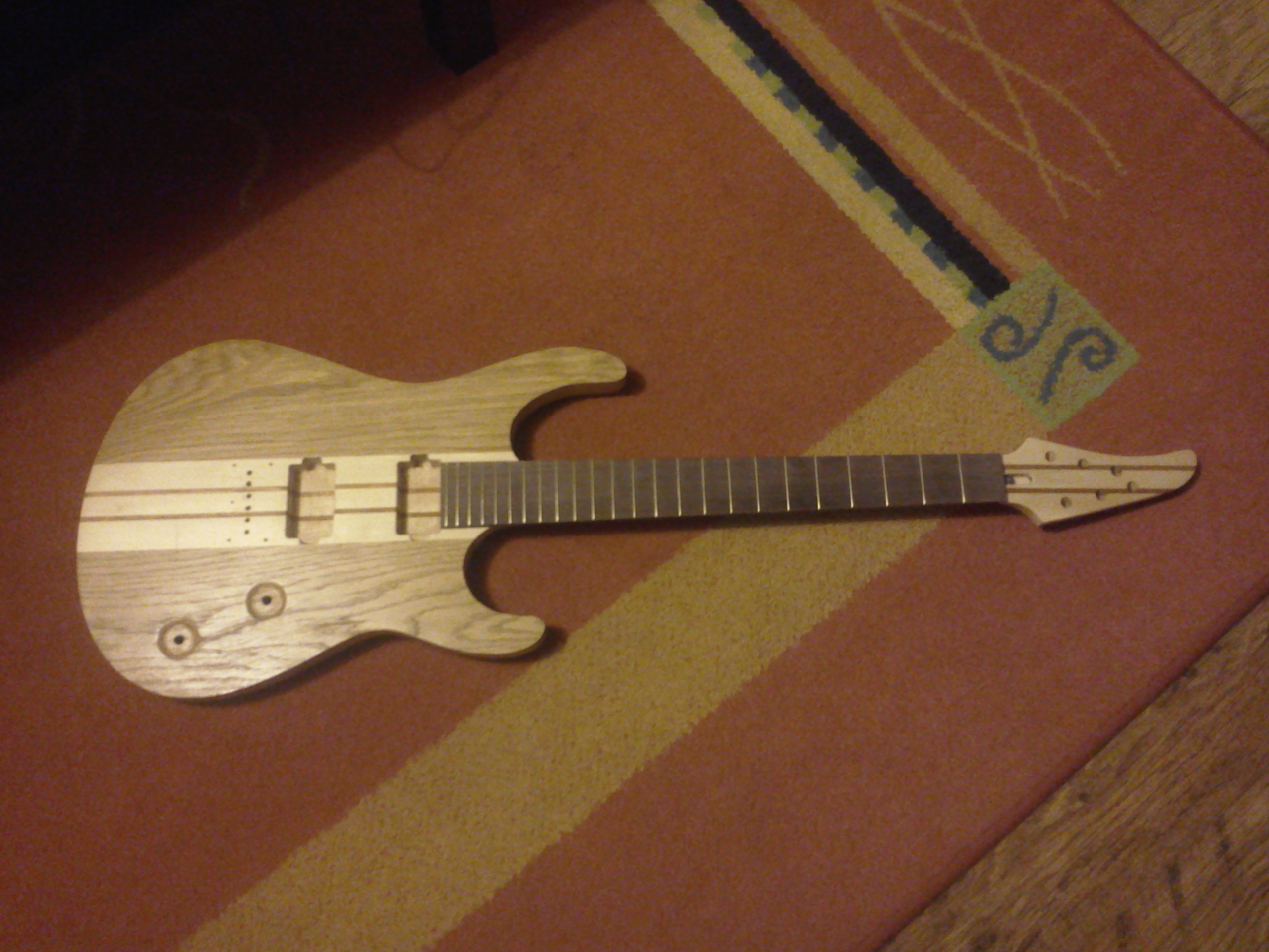 Witam załęczam fotki mojej pierwszej gitarki na czym się wzorowałem chyba każdy pozna, konstrukcja, szyjka klon przekładany z merbau podstrunnica palisander korpus jesion.