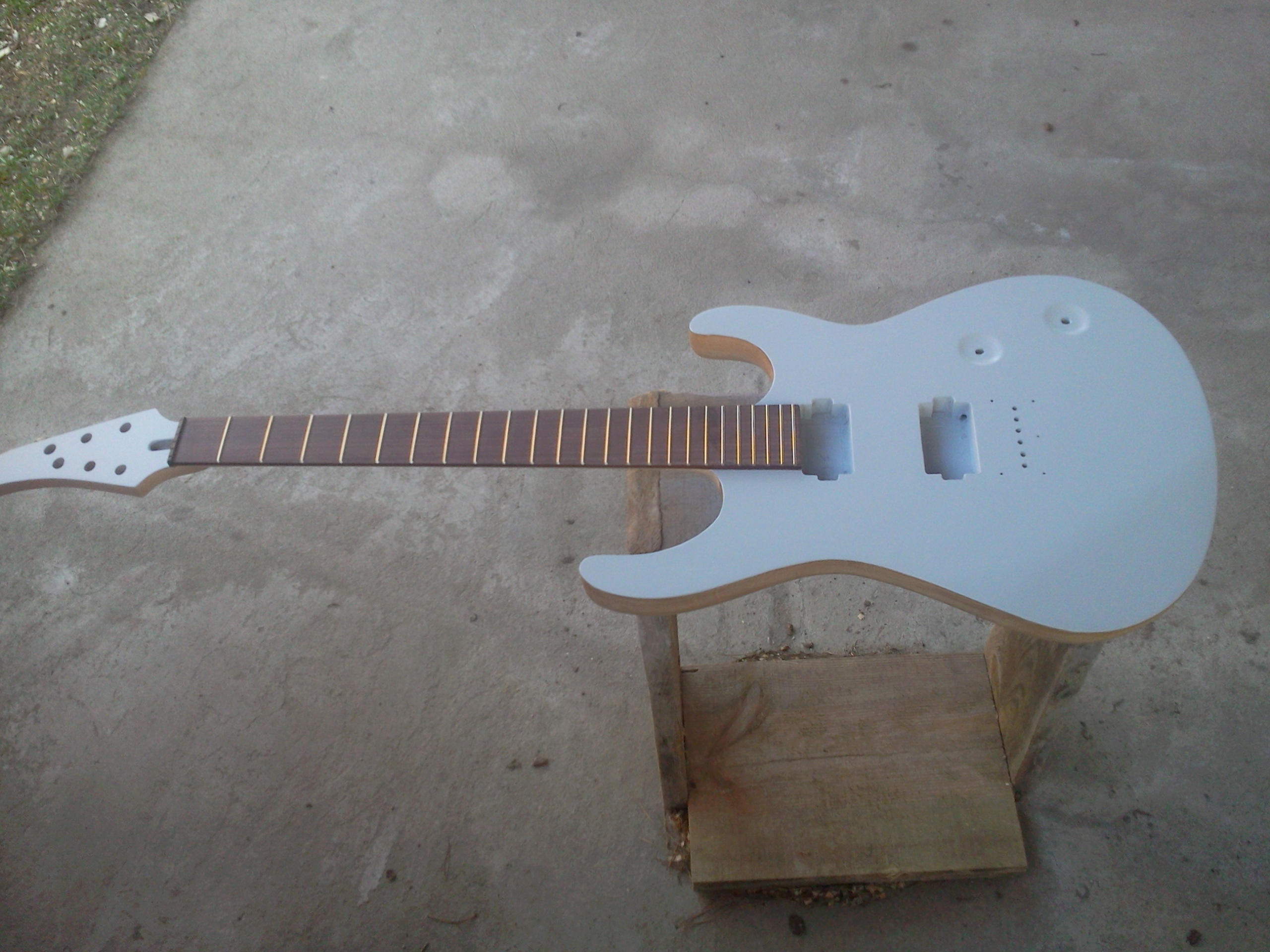 Nie no pomalowany jest tylko front, cała gitara z tyłu jest w bezbarwnym lakierze, jeszcze tylko markery na podstrunnice muszę daę, przynajmniej z boku no i przetworniki założyę. Ogólnie miał byę binding na desce, ale za bardzo nie chciałem komplikowaę.