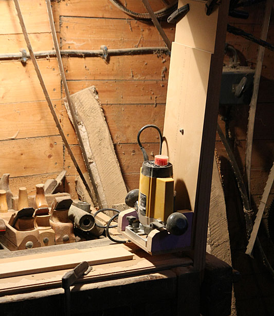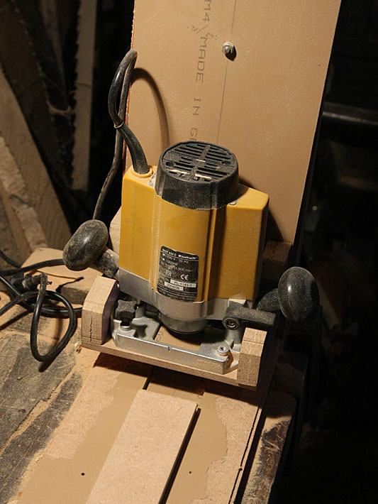 Postanowiłem zmierzyę się z tematem wykonania klocków do szlifowania podstrunnicy. W tym celu skleciłem dołę proste ustrojstwo - nieruchomy uchwyt, do którego mocowany jest "przyszły klocek" oraz ruchomy "uchwyt/ramię" do frezarki. Zamiast opisu konstrukcji - wrzucam zdjęcie.