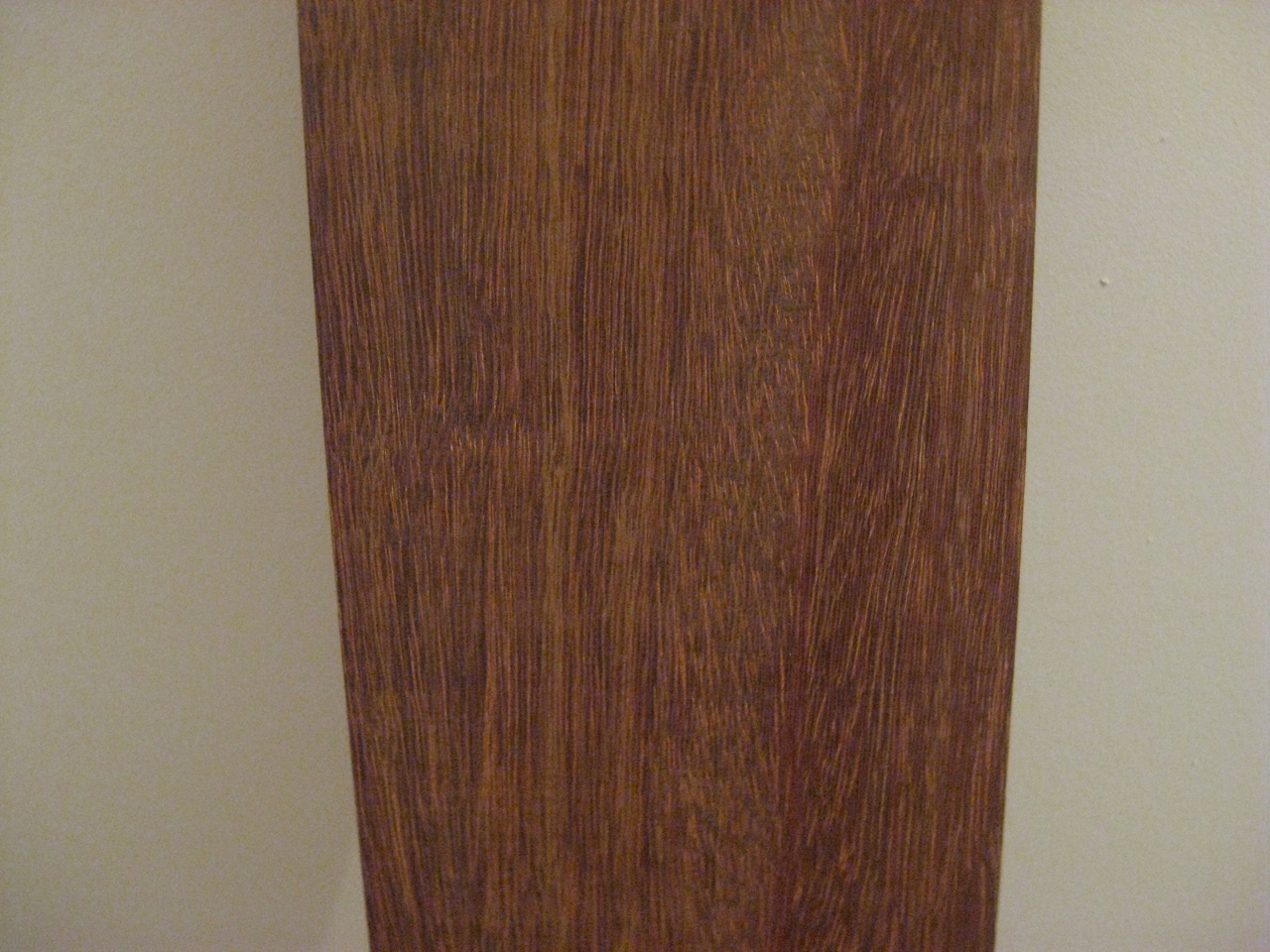 Drewno jest bardzo zwarte ciężkie i twarde. Twardsze od dębu. Wyględa na bardzo stabilne bo pomimo przechowywania go w bardzo zmiennych warunkach od bardzo wilgotnej piwnicy po super suche poddasze nie uległo wypaczeniu. Mam te drewno od około 8 lat więc jest nieęšłle wysezonowane. Po struganiu ma 150cm dł. 13cm szer. i 7mm gr. Może ktoł bardziej obeznany potwierdzi moje rozpoznanie co do gatunku drewna. Druga proęšłba to żebyłcie się wypowiedzieli co myłlicie o nim jako materiale na podstrunnicę, bo przy dobrym rozmierzeniu