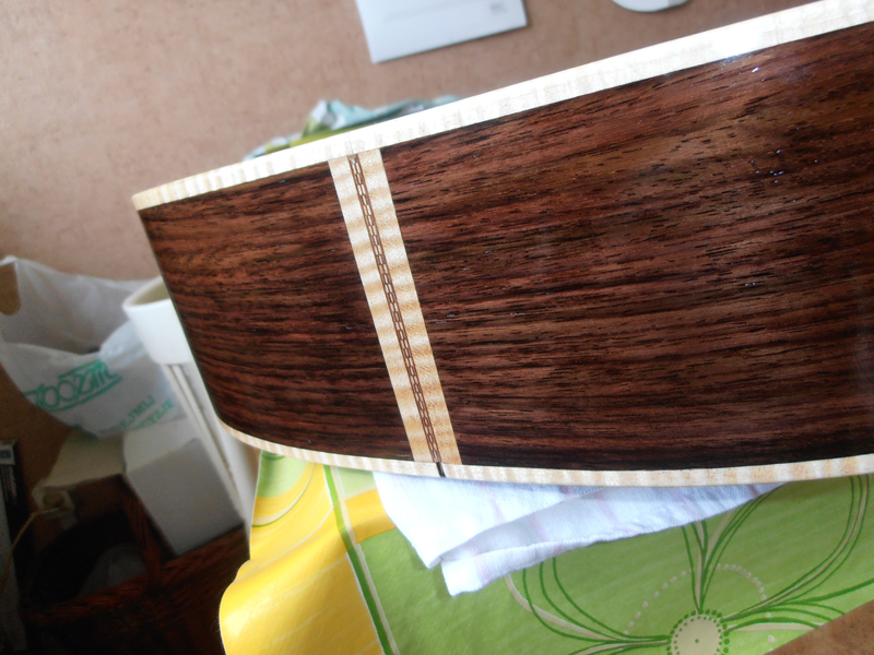 Możesz zdradzię, jak uzyskałeł ten biding jasno ciemny kreskowy? Jeżeli się nie mylę, to najpierw sklejone zostały paski forniry biały/ciemny/biały i ciemny/biały ciemny, a następnie pocięto te sklejki na krótkie odcinki i przyklejono naprzemiennie do paska białego i przykryto ciemnym / można było by tę operację pominęę i było by jak kerfing/ tworzęc taki biding special.