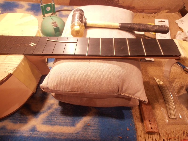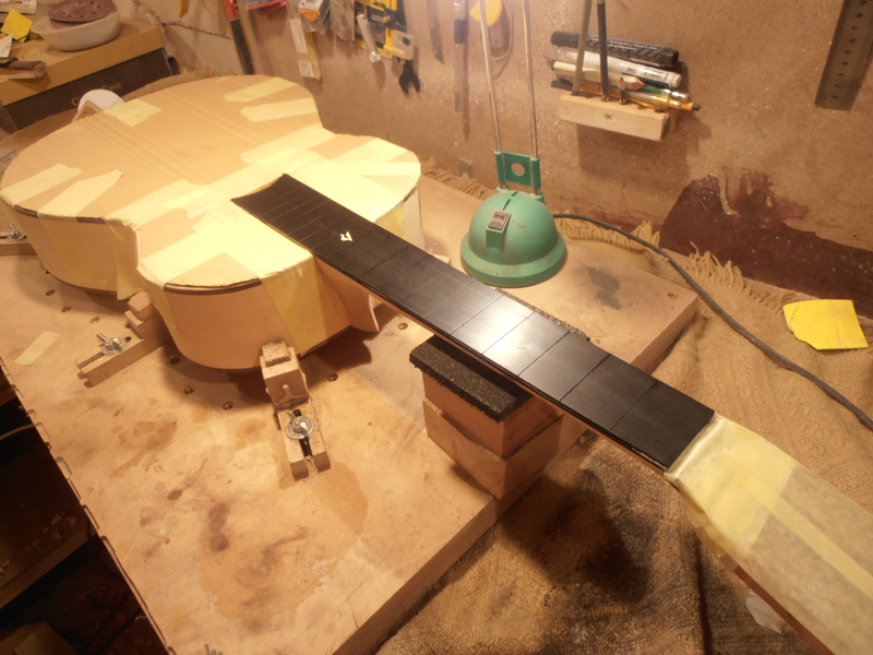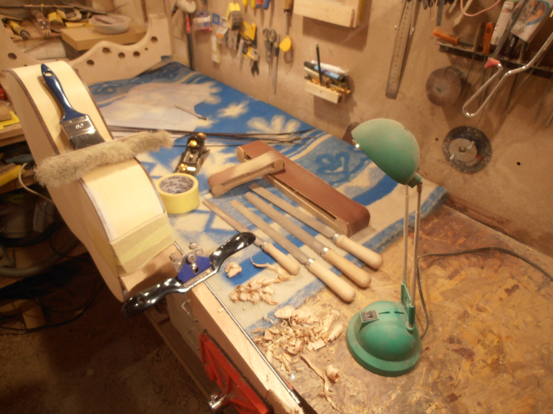Kolejne fotki... z prac . Cyba z przed 24 godzin.... ? dzis już gitara od rana została przygotowana pod politurę i o godz. 18 ej dostała pierwsze warstwy szelaku indyjskiego . Jest teraz piękna i słoneczno- złota . Fotek już nie mam bo arat gDzieł został wyprowadzony ... a i mnie już nie chciało się nic dokumentowaę . Wolałem zajęę się robotę... Jak bedzie już gotowa ...to coś tam cyknę jeszcze. Póki co należy mi sie odpoczynek i jakał księżka....? albo film...? Czyli relaks.....