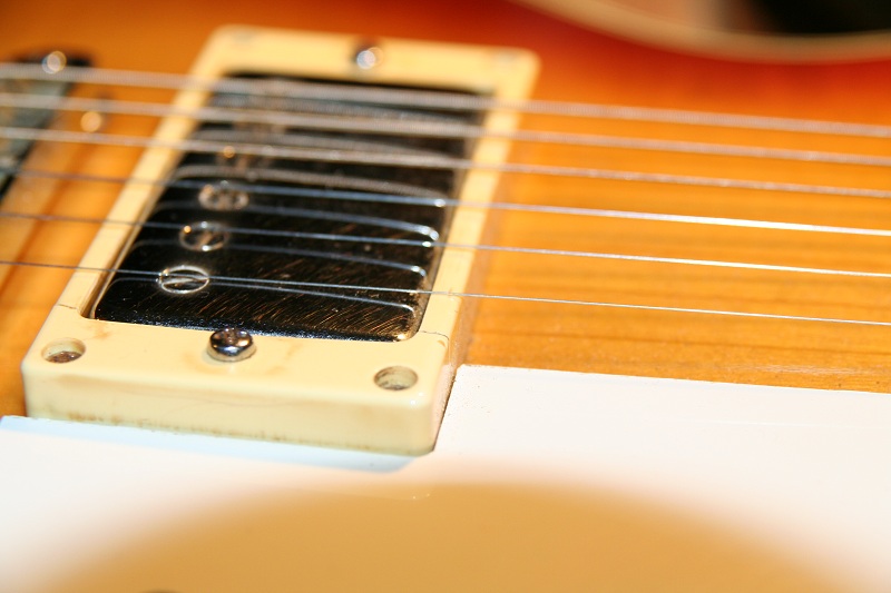 Na zdjęciach 4 i 5 widaę istotę problemu po wycięgnięciu podkładki. Struna e1 położyła się na ramce. Akcja ustawiona na e1-1,6mm e6-2,0mm.