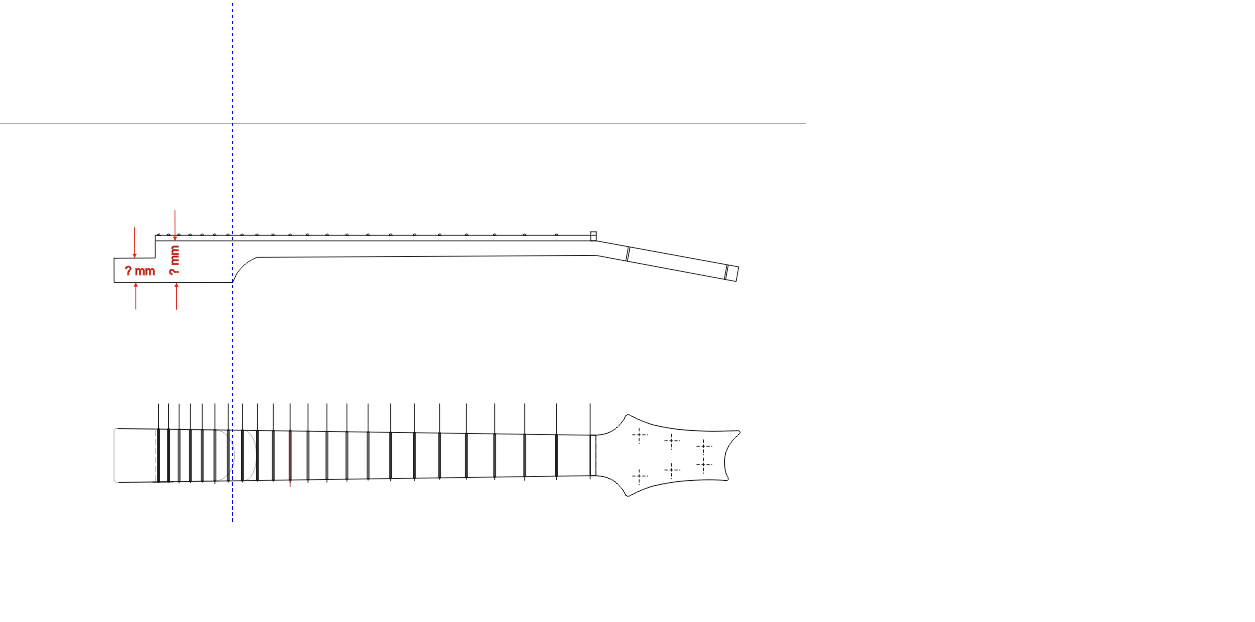 Witajcie, dawno mnie tu nie było brak czasu bla bal.... po skołczonej sezonowej tyrce na budowie mogę znów wrócię do projektu PRS custom 22 i znów mam niewiadome odnołnie wymiarów :/ tak więc może ktoł wie ile mm grubołci maję zaznaczone strzałkami owe miejsca i jak głęboko ma byę osadzony gryf w korpusie z góry dzięki i pozdrawiam :)