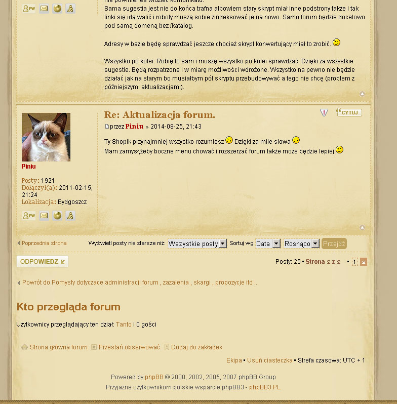 Tego nie mogę zagwarantowaę. Do starego forum była taka modyfikacja, do tej wersji jeszcze nie znalazłem... nie obiecuje ale się staram.Tanto pisze:- wyskakujęce okienko po najechaniu na nazwę tematu, z fragmentem pierwszego i ostatniego posta.