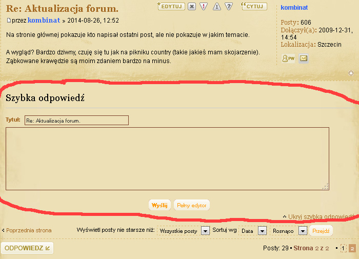 Mówisz i maszEnder pisze:Układ strony z awatarami po lewej i wyraęšłnę nazwę użytkownika nad awatarem był bardzo czytelny, teraz jest postawiony na głowie. Na większołci for jest poprzedni układ i to nie bez przyczyny. W podobny sposób są pisane np. pisma urzędowe - nazwa piszęcego jest w górnym, lewym rogu.
