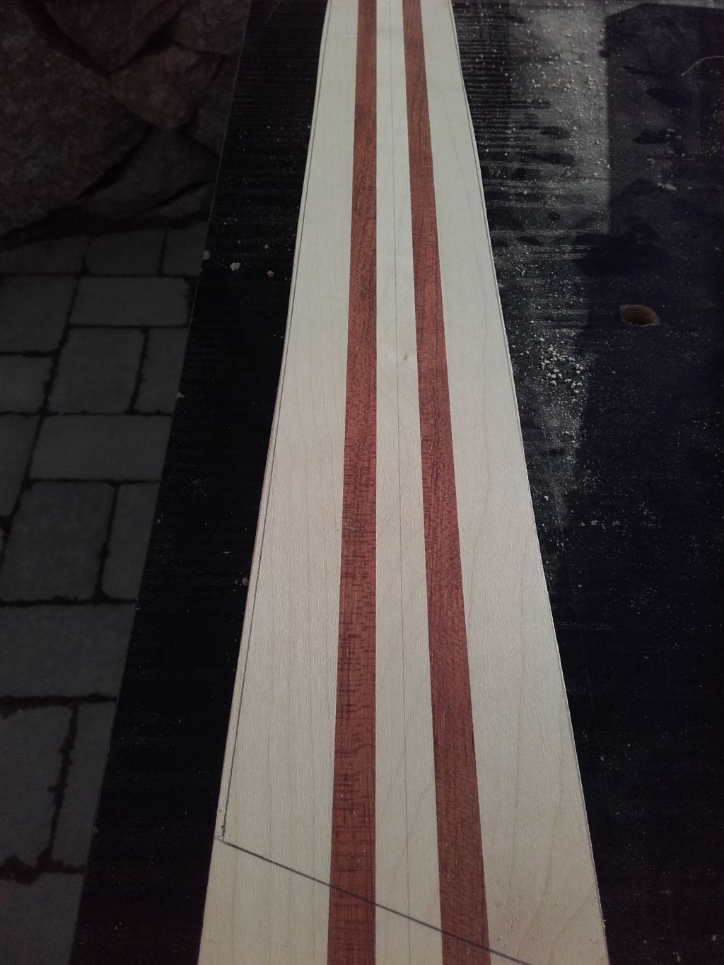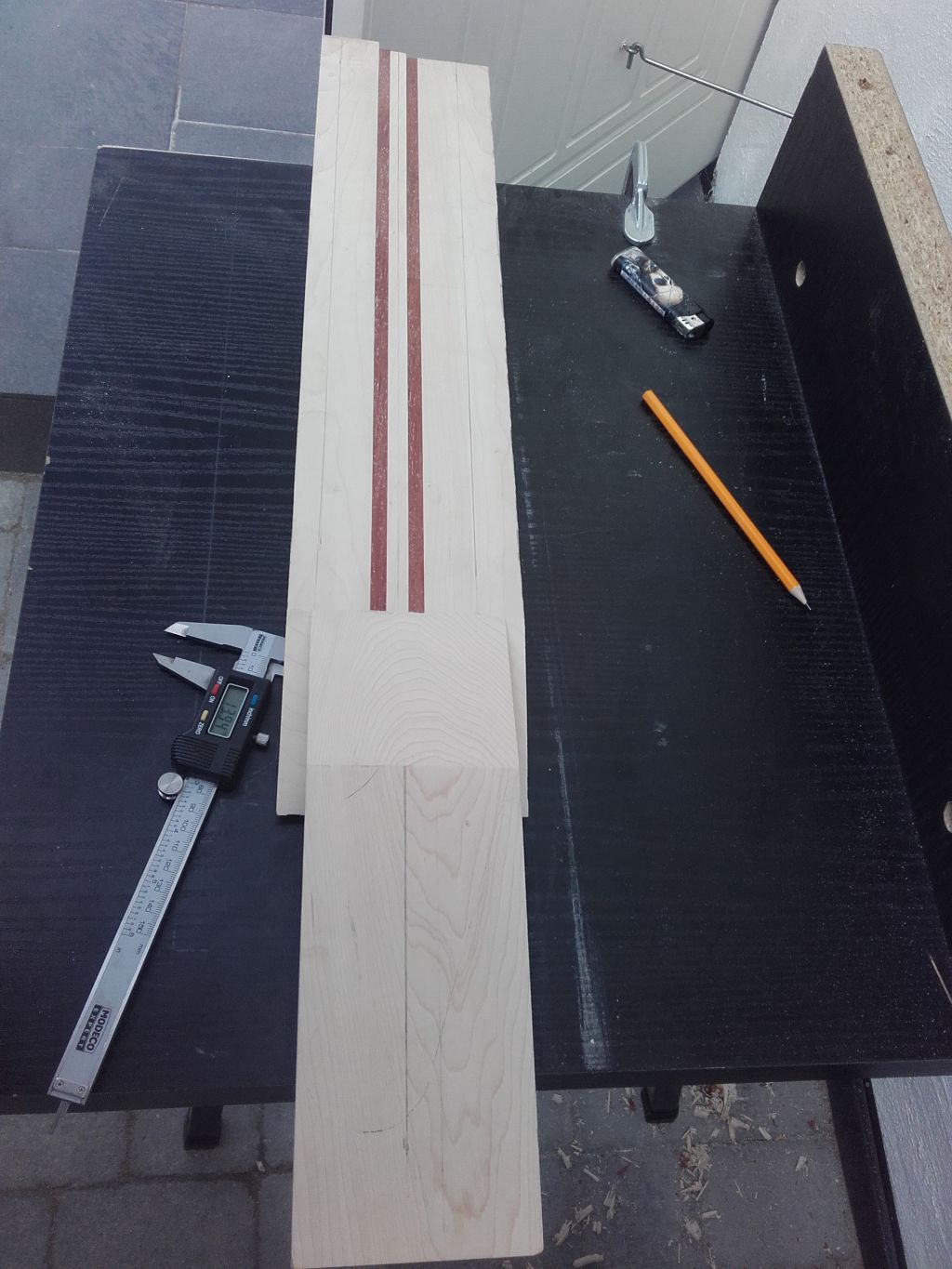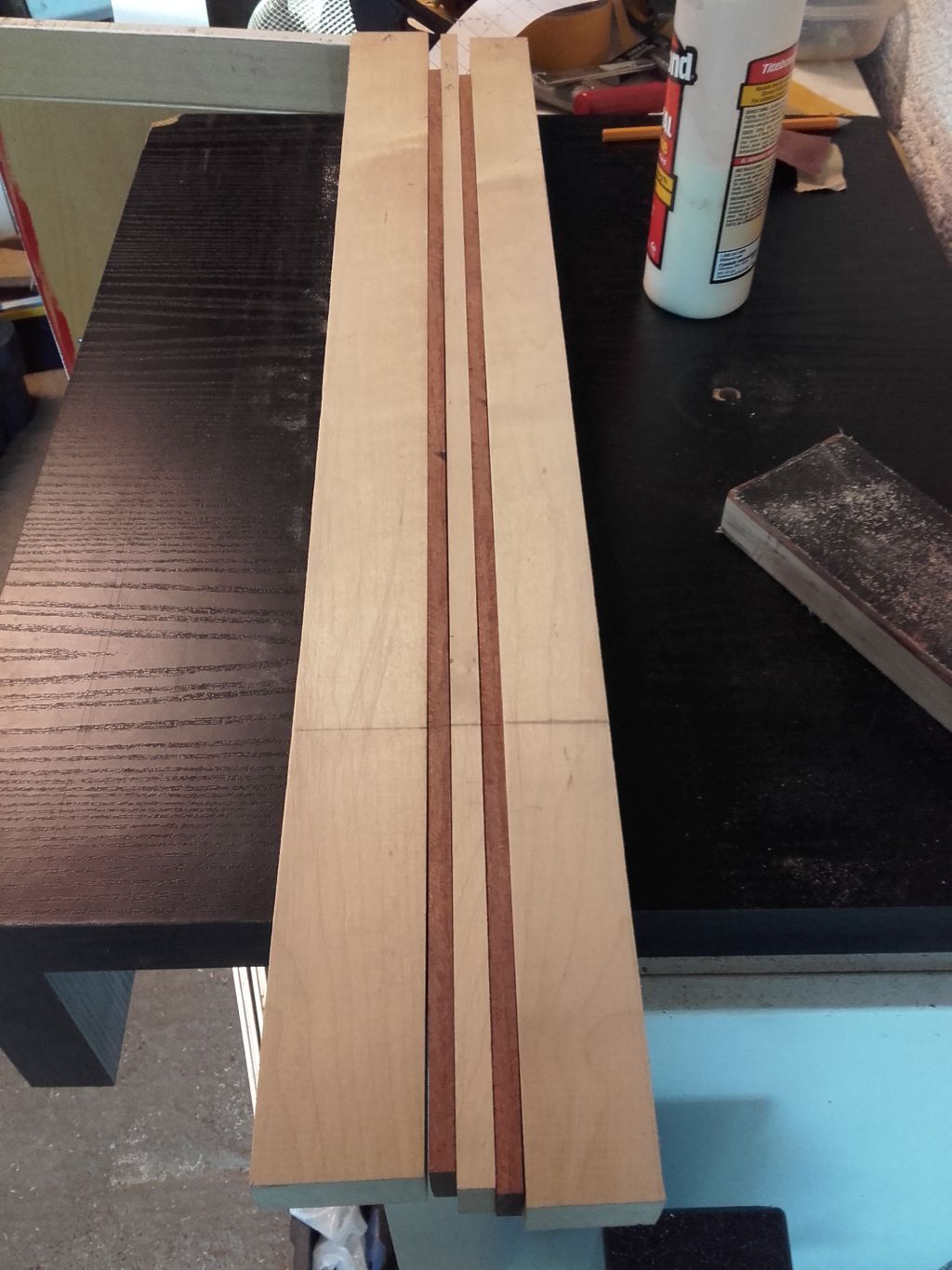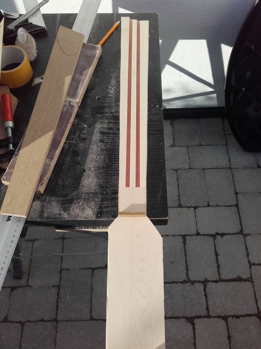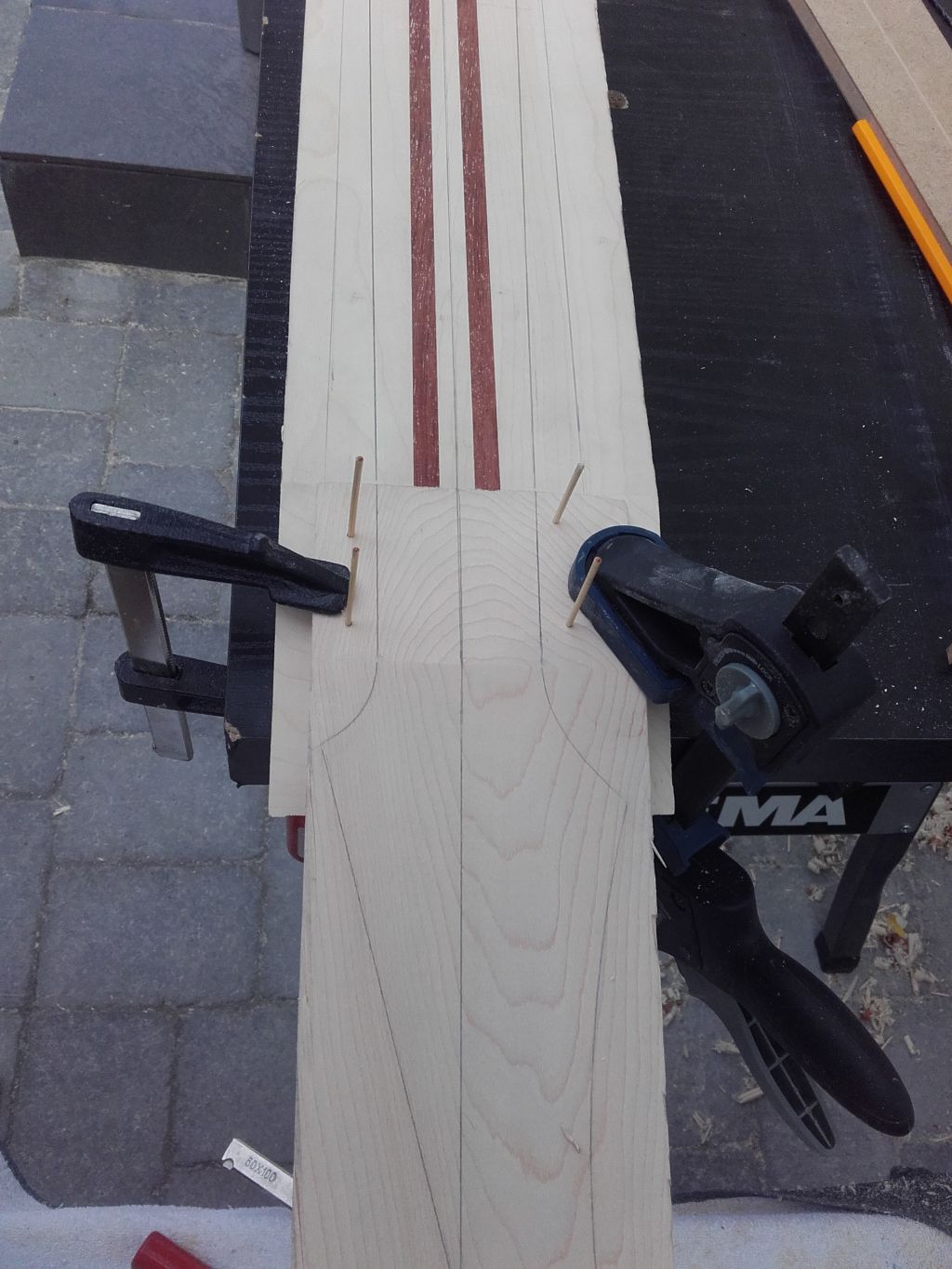 Wyjłciowy element jeszcze przed sklejeniem Klon bubinga grubołę 25mm i długołę 720mm
