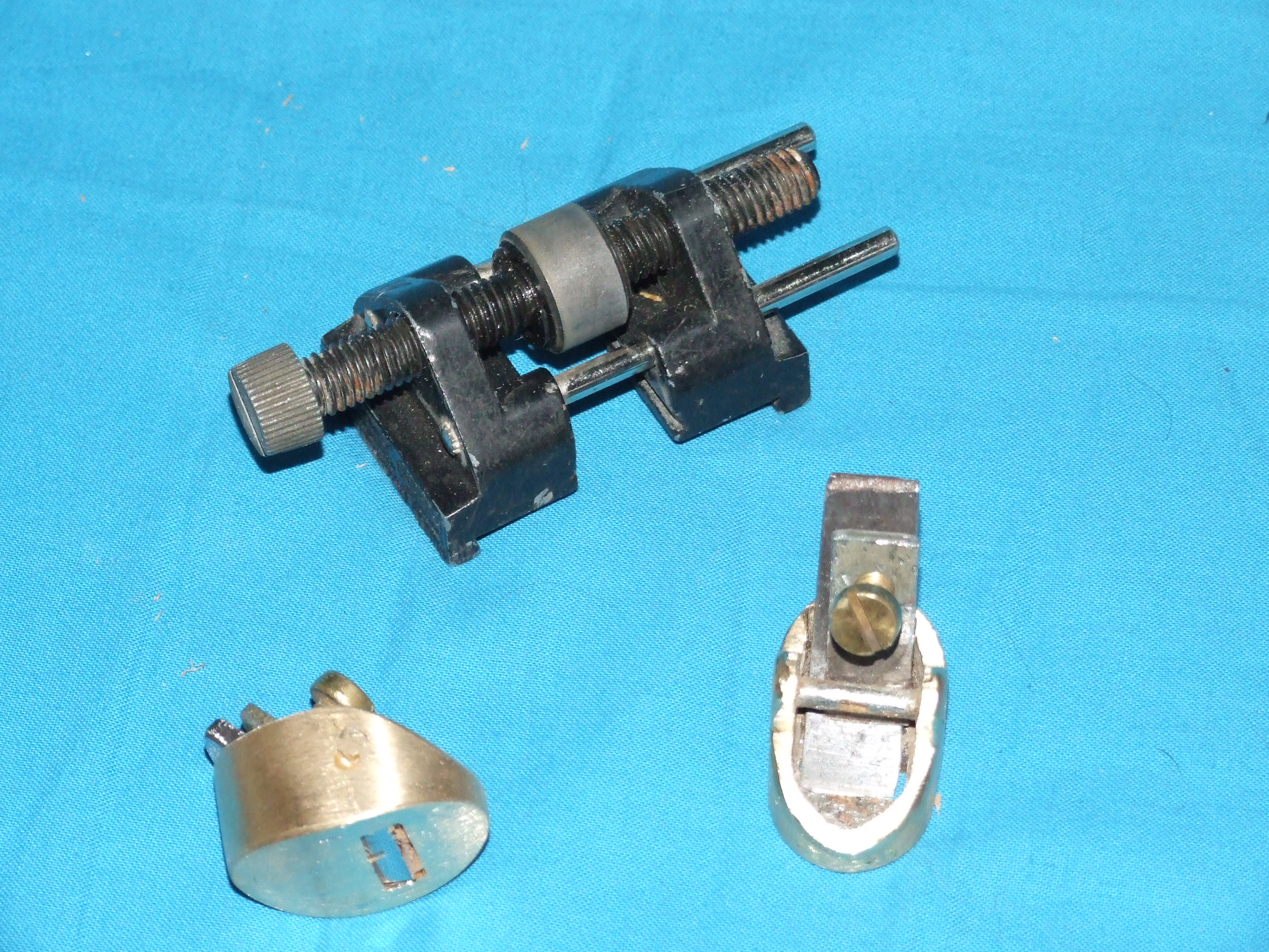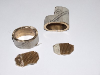 Jako materiał wyjłciowy posłużyła mi mosiężna obudowa miarkownika cięgu do pieca c.o., którę przecięłem na trzy częłci. Dwie z nich posłużyły jako konstrukcja nołna, a jedna jako materiał na "płozy" struga.