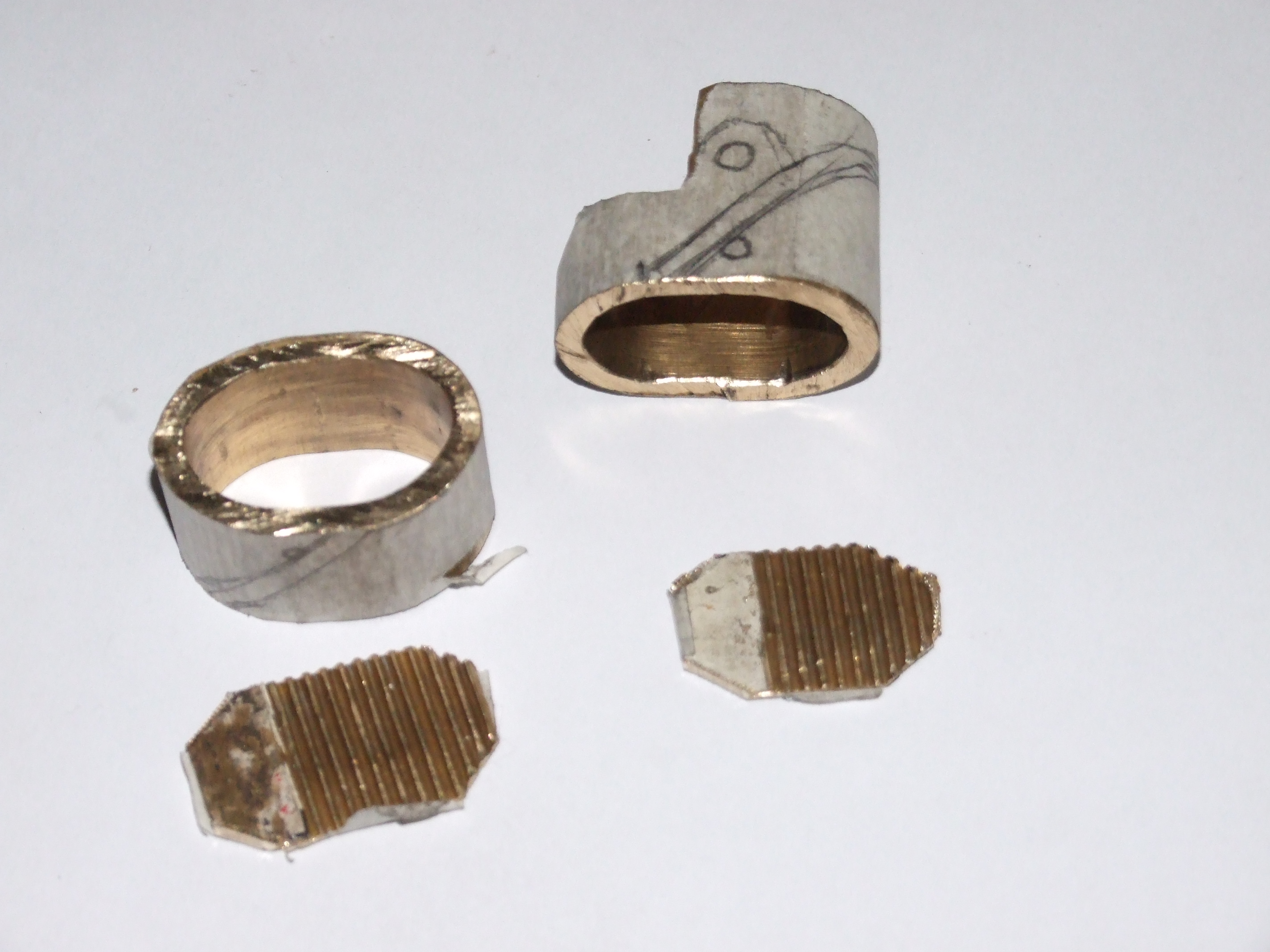 W imadle spłaszczyłem rury uważajęc, aby nie pękły i nie zdeformowały się poprzez zapadnięcie i uformowałem ostateczny kształt , a z pozostałej rurki wycięłem dwa kawałki, które uformowałem precyzyjnie do otworu wewnętrznego.