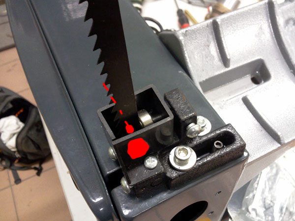 (Swoję drogę, gdyby nawet, ktoł wkręcił łrubę tak jak ja myłlałem, to jak potem piłę wyjęę... Skoro są prowadnice, to jeszcze tylko: Czy takie dodatkowe łożyska potrzebne? Chyba przesadne kombinowanie. Co tam za tarcie jest - co najwyżej popiszczy trochę. Chyba nie ma co "przesadywaę"