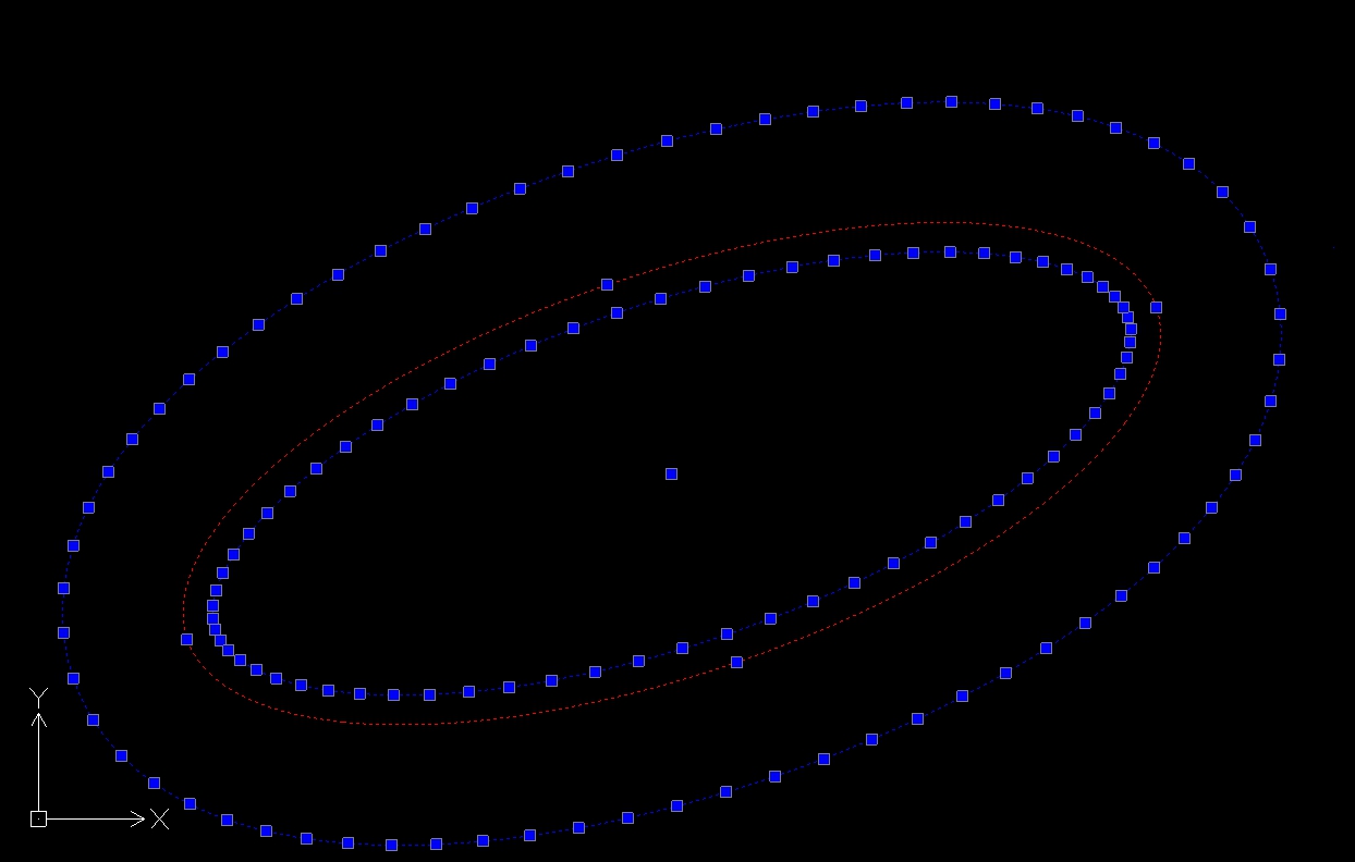 Offset to bardzo skomplikowane algorytmy w grafice wektorowej. Nie znam ich, ale wiem, że tylko proste kształty przekształcaję się w proste kształty. Tam gdzie prosta pozostaje prostę, albo gdy łuk kołowy pozostaje łukiem kołowym tylko o zmienionym promieniu. Dlatego w tym darmowym sofcie nie było kłopotów z offsetem kształtu mola, bo ta polilinia składała się tylko z odcinków prostych i łuków kołowych. Ale żeby nie zaróżowię, soft ten nie poradzi sobie z obiektami o zmiennej krzywięšłnie. Jeszcze z elipsą sobie radzi, ale wynikiem offsetu nie jest oczywiłcie elipsa, bo nie może nię byę (geometria), za to zamieniona zostaje na wielowęzłowę krzywę (rys. 9), podejrzewam, że 3go stopnia sklejanę. Tej krzywej nie odsuniemy już ani w darmowym sofcie, ani nawet w AUTOCADZIE Autodesku. Ale za to w Autocadzie odsuniemy proste spliny (rys 10), a w darmowym niestety nie. I taka jest przewaga komercyjnych softów nad darmowymi w kwestii OFFSETU. Więc dopóki operujemy stałymi krzywiznami (proste i łuki kołowe) to podany przeze mnie soft darmowy jak widaę daje radę znakomicie. Jak chcemy krzywe sklejane o zmiennej krzywięšłnie (spliny) - to tylko dobry soft, raczej komercyjny, choę będę szukał darmowego, który i to przełknie.