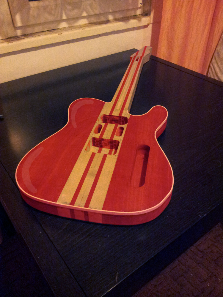 Jest szansa, że gitara spadnie ze stołu i się potłucze. ShopiK, bardzo estetycznie to wyględa, już niewiele do kołca zostało. Zostawiasz "kopyto" na przejłciu szyjki w korpus czy będziesz płynnie profilował?