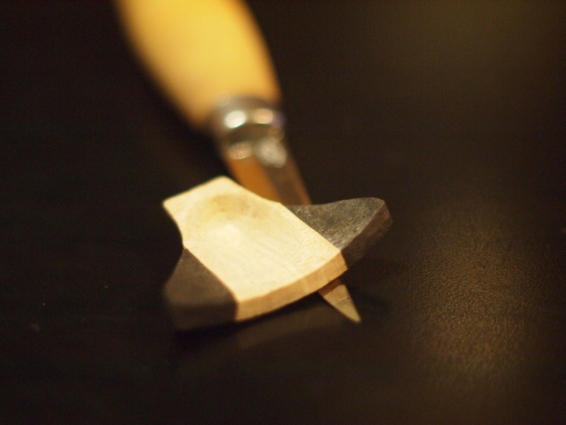 Jak widaę od spodu - barwienie przebiło deseczkę na wskroł. Bejca wodna przepenetrowała strukturę drewna. Na szczęłcie spodu już nie widaę:) Belki zrobiłem z wenge i nakleiłem na klej z żelatyny (jak wszystkie połęczenia). W gnieęšłdzie gryfu też są wklejki z wenge. Pierwotnie chciałem gryf przykręcię, więc poluzowałem sobie z pasowaniem na wcisk. W międzyczasie zachciało się wklejenia, więc trochę gniazdo poszerzyłem i dokleiłem boczki, żeby gryf wszedł jednak z wciłnięciem. Zrobiłem to porzędnie wybierajęc spory zapas i wklejajęc na kostny lite elementy. Po doszlifowaniu spasowałem gniazdo z gryfem. Wyględa jak wyględa, trochę tu "sztuki" jest, ale efekt (wizualny) nie jest tragiczny z bliska. Bindingu nie będzie - nawet podoba mi się, że widaę po rancie, że bejcowane drewno (dwoma kolorami), jest to taki element kontrowersyjny, bo odbiega od "perfekcji" (jak wszystko na razie u mnie