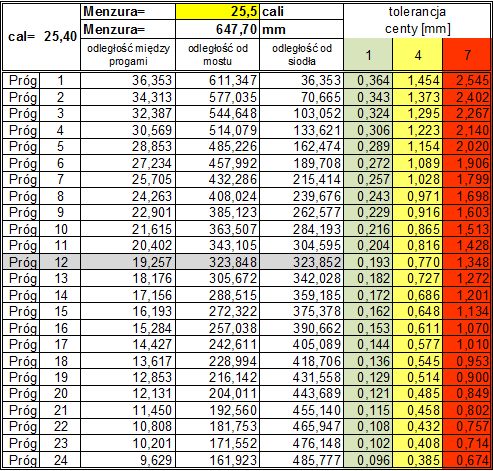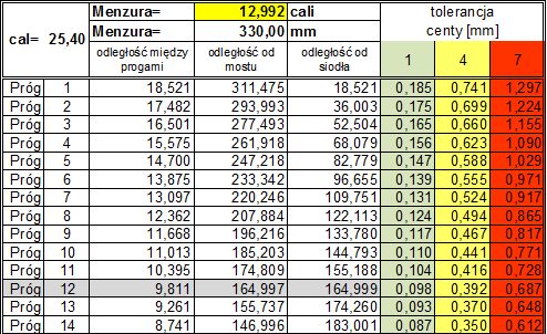 Moim zdaniem nie. Skoro odległołę pomiędzy progami to rzęd centymetrów. Jełli dobrze zrozumiałem Jerzego - centy to są setki interwału odpowiadajęcego jednemu tonowi tak? W takim razie 1mm zmiany dystansu między progami odpowiada rzędowi 2-5 centów (dla odległołci 3 i 1 cm), a takie różnice słyszę stroiciele pianina. Natomiast 1/2mm to rzęd 0,8 - 2,5 centa - tego i stroiciele nie słyszę. Uwzględniłem liniowołę zmiany wysokołci tonu przy zmianie odległołci więc jest to tylko szacunkowe - ale rzęd wielkołci się nie zmieni. Więc sumujęc błędy pozycji (nieznane) na poziomie 0,2mm z błędem nacięcia na poziomie 0,2mm z błędem odczytu na poziomie 0,1mm to w skrajnej sytuacji dostajemy pół mm potencjalnego maksymalnego błędu względem siodełka. A to jest maksymalny błęd a nie odchylenie standardowe - dużo częłciej będzie on mniejszy. Więc nie spodziewał bym się słyszalnych zmian. To jest moje szacowanie i tyle jak dla mnie wystarczy.