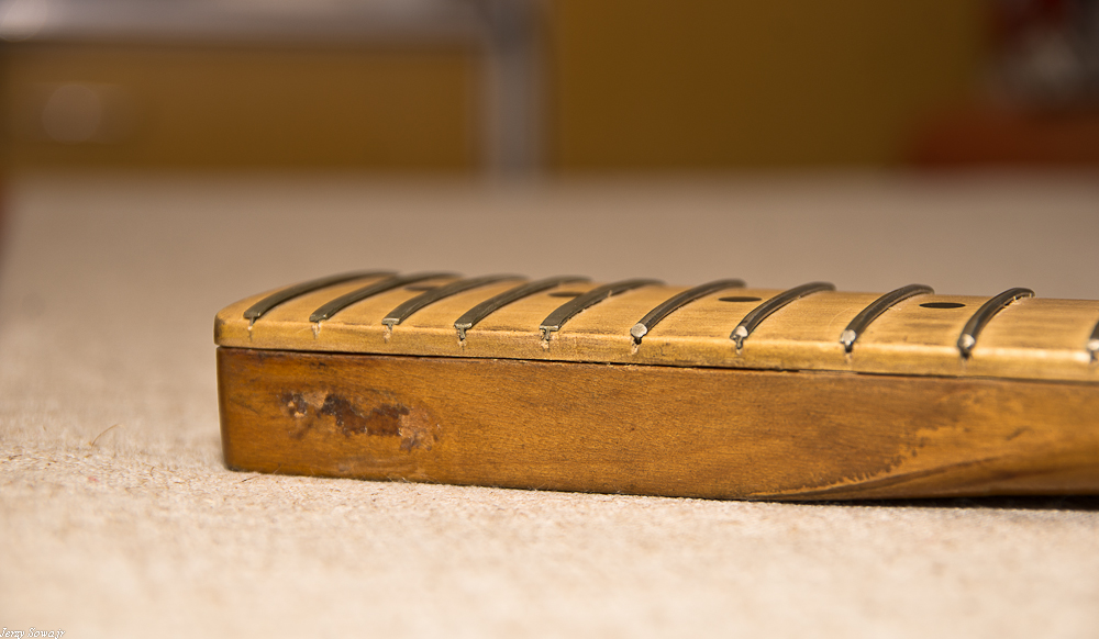 Nie wiem jak inni ale ja szlifuje podstrunnicę ( radius ) ze wstępnie naciętymi progami ,na ustawieniu pręta możliwie najbardziej prosto .Wtedy wychodzi najdokładniej ,potem docinam rowki i cała robota .