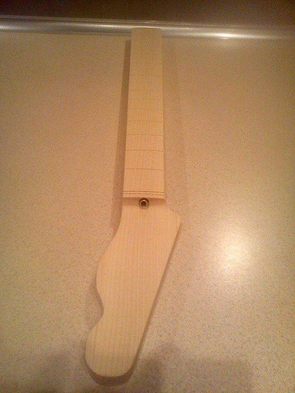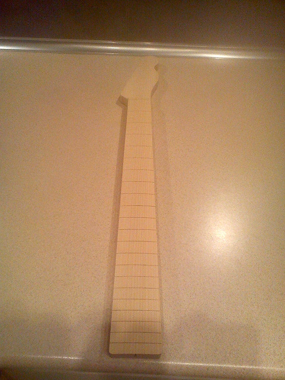 Dzisiaj zamontowałem pręt regulacyjny, nacięłem wstępne rowki na progi, wyszlifowałem radius oraz wstępnie oszlifowałem cały gryf.